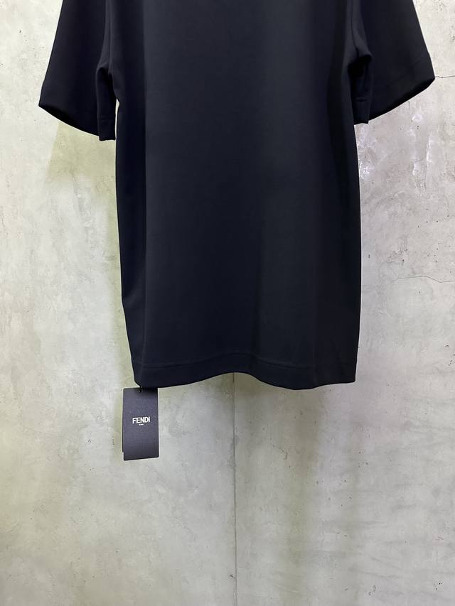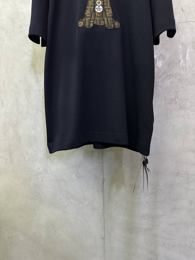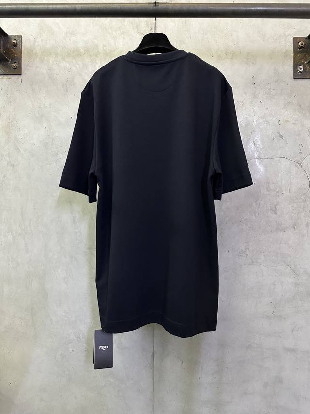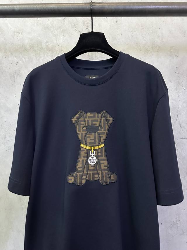 Fendi Ss25 Puppy Applique Embroidered Short-Sleeve T-Shirt. Fabric: Mercerized double-sided fabric. The puppy applique on the chest is made of mercerized Oxford cotton gauze, with embroidered edging and stitching around the edges, adorned with the Fendi logo. Custom-made ribbed hardware. Unisex style. Color: Blue. Size: S, M, L, XL.