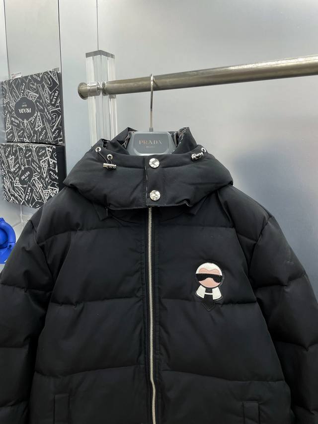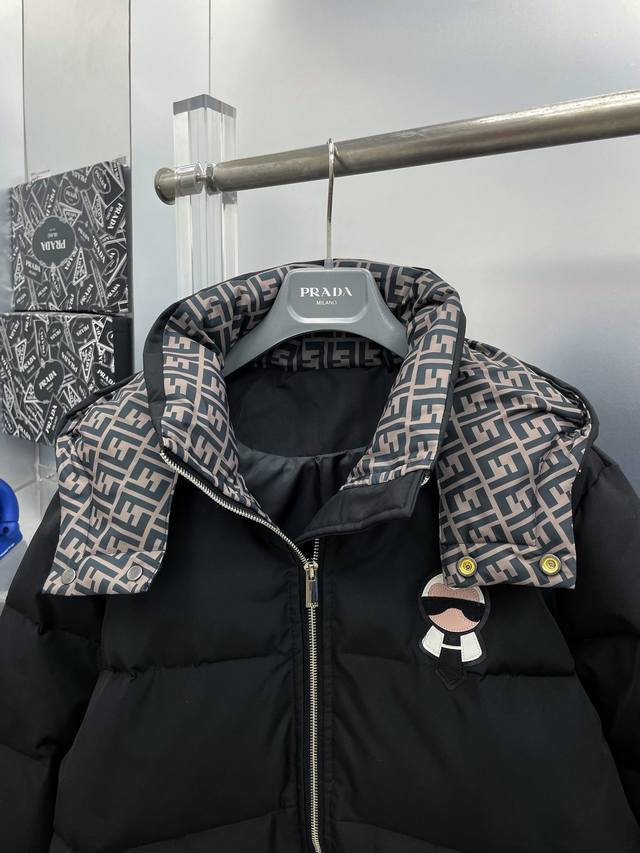 Fen*Fendi 2025 Autumn/Winter New Karl Lagerfeld Logo Down Jacket Hooded Outerwear Ddd D All 90% down, complete with all three labels. Featuring the classic logo combination, it makes a strong visual impact at first glance. It boasts superior warmth, is lightweight without being bulky, and has excellent loft recovery after compression, effectively retaining heat! The unique color-blocking design is fresh and vibrant! There are far too many versions circulating in the market. Besides differences in fabric and workmanship, the biggest difference is that the filling is not goose down but feathers or soft down, etc., which is difficult for those unfamiliar with the industry to distinguish. Furthermore, the fabric and workmanship are definitely not on the same level. In short, choose us, and you won't be disappointed. We exclusively purchase all colors from authentic sources and develop our products. Those who understand the quality of our down jackets can buy with complete confidence. Complete with all three labels! Ddd Unisex Ddd Sizes: M-3XL DDD