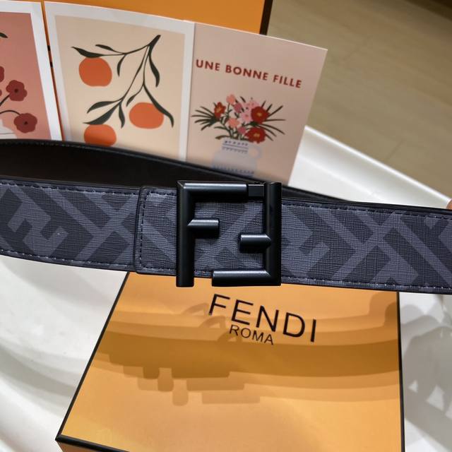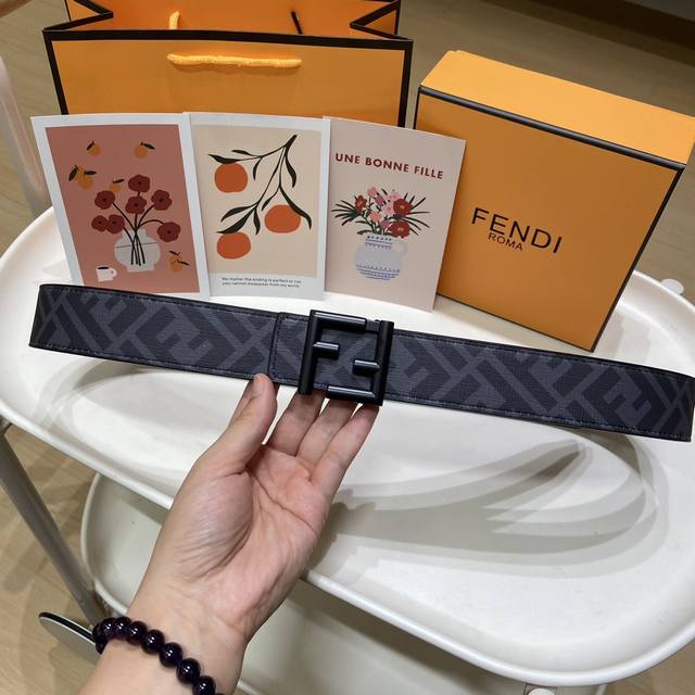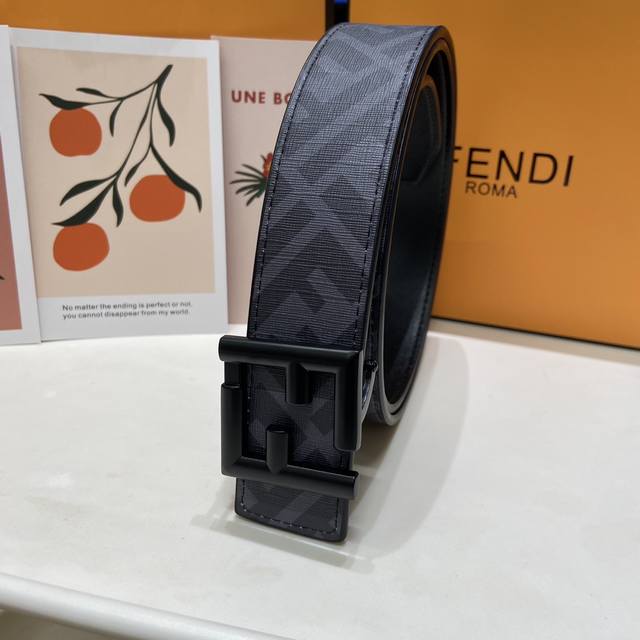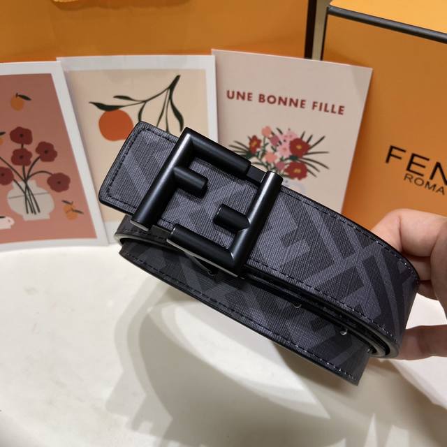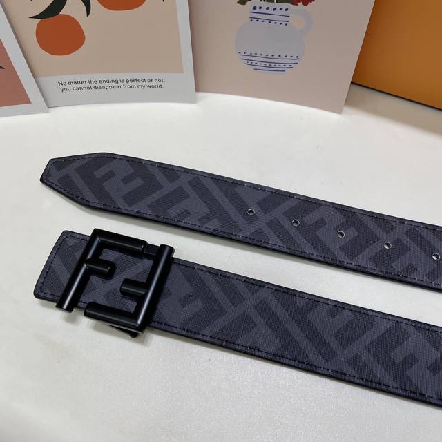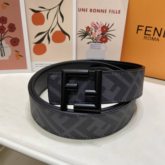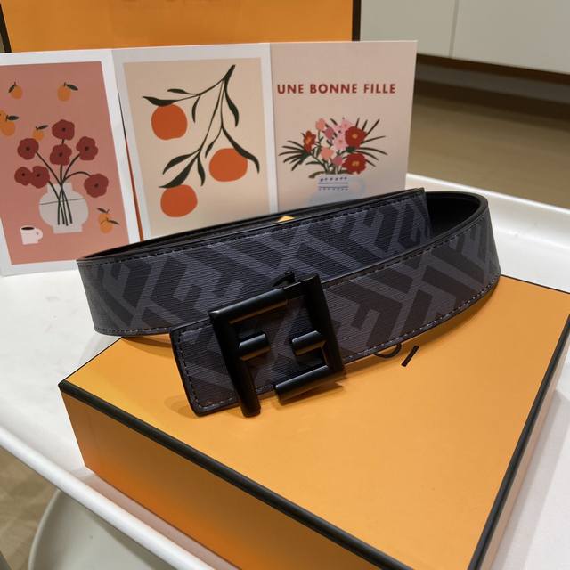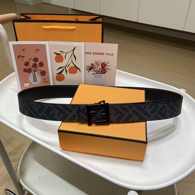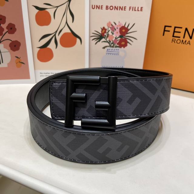 High quality Fendi solid color classic belt, black buckle with logo, elegant an