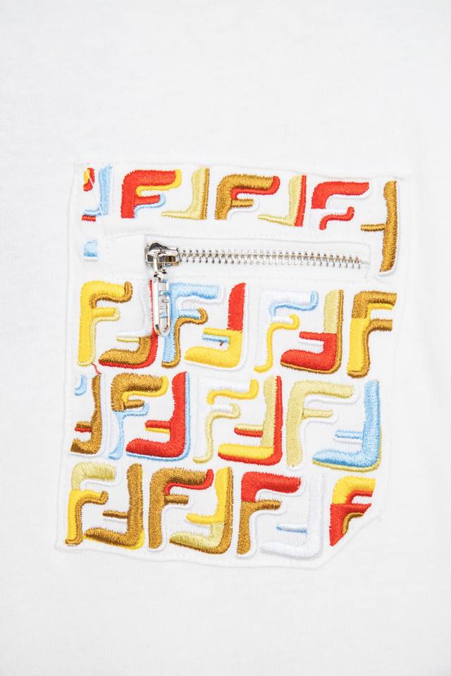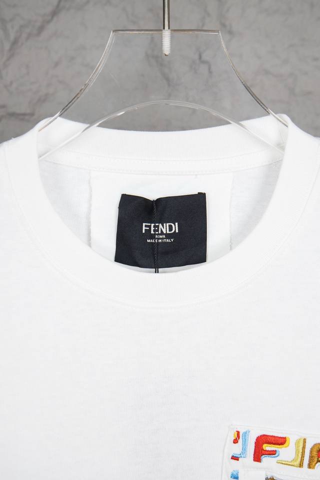 Style No.: M104 Fendi 2025 Premium Embroidered Zipper Pocket Patch Short-Sleeve Crew Neck T-Shirt with Exquisitely Upgraded Logo. The colorful double embroidered patch pocket pattern adorns the chest, and the full, three-dimensional embroidery creates a three-dimensional logo image. Classic and stylish. Made with original fabric, this official short-sleeve T-shirt is made of custom 320g fabric with a very comfortable feel. Whether for everyday wear or a party, it showcases your fashion taste and personality. This short-sleeve shirt features a comfortable cut and casual style, suitable for various occasions. Don't miss this limited-edition opportunity to own this hot trendy item! Colors: Black, White Sizes: SX