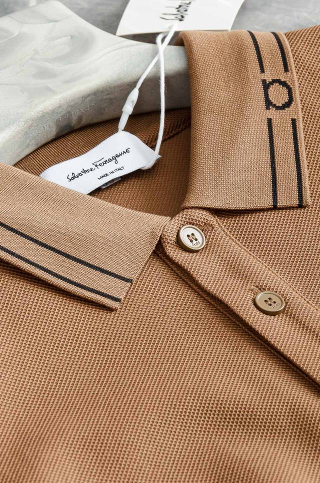 Ferragamo 2025Ss Breathable Fabric 100% Pima Cotton Men's Crew Neck Short-Sleeved T-shirt with Signature Embroidery on Chest# Made from 100% Supima cotton grown in the USA, Supima differs from common cotton in that it is a type of ultra-long-staple cotton with longer fibers, resulting in greater strength and color fastness. This makes products made with Supima fabric more durable and significantly reduces pilling compared to conventional cotton. This means that even after years of use, both the color and the fabric will appear newer than regular cotton. The texture is also dense and fine, soft, firm, and breathable. It drapes well and retains its shape! It also resists fading, making it more comfortable and durable than typical pure cotton fabrics. Its higher activity level results in improved color fastness, and its skin-friendly, high-strength fabric effectively reduces the feeling of stuffiness caused by direct UV rays from the sun. It is more breathable and comfortable than ordinary fabrics, providing a relaxed and comfortable wear experience.
