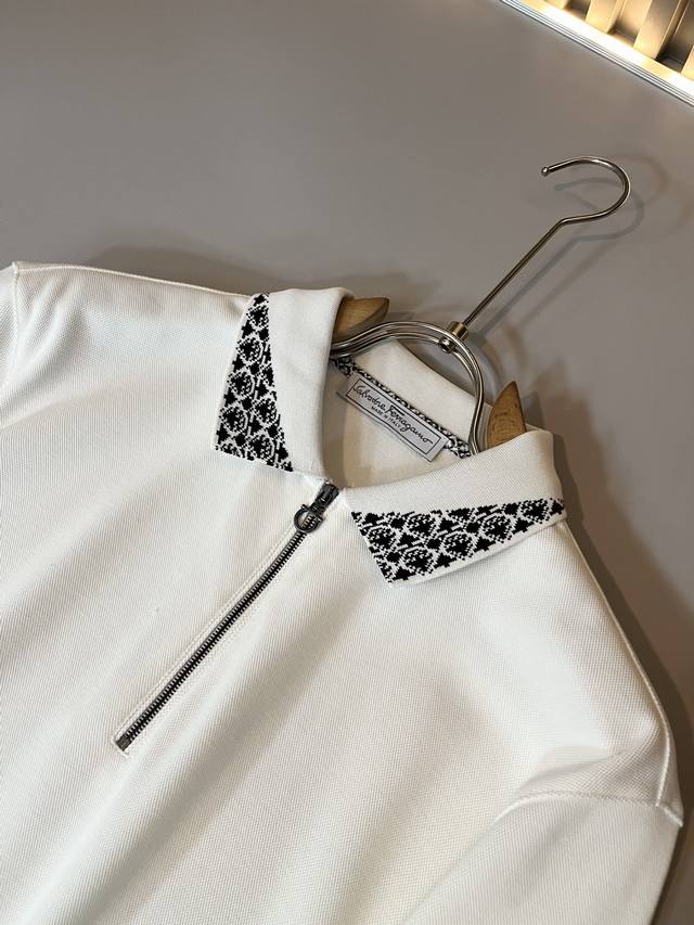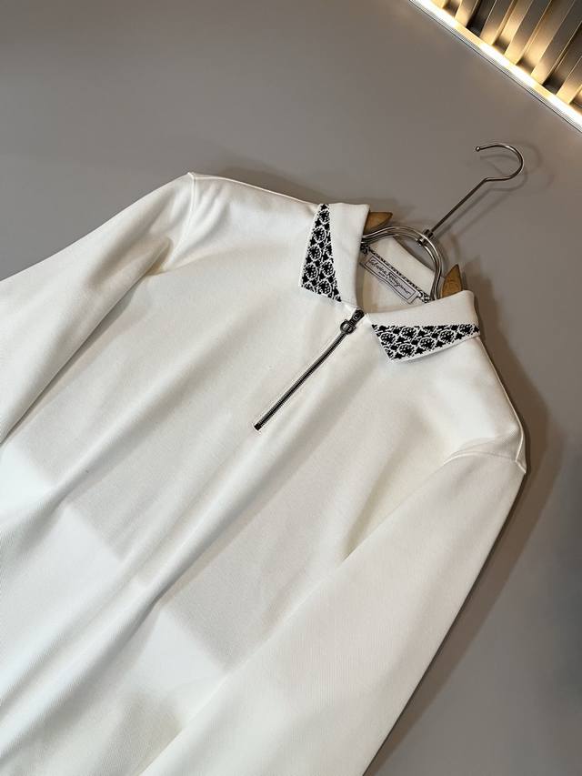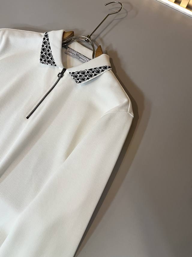 Ferraga*Mo 2025 Autumn/Winter New Polo Shirt, made with imported exclusive pique cotton fabric! Simple Ferraga*Mo logo zipper design! Representing the brand image, a simple and comfortable style with even and full lines, exquisite and delicate, giving it a high-end and luxurious feel. The simple design makes it more versatile for various outfits. A stylish cut, a simple solid color men's short-sleeved polo shirt with a small pointed collar