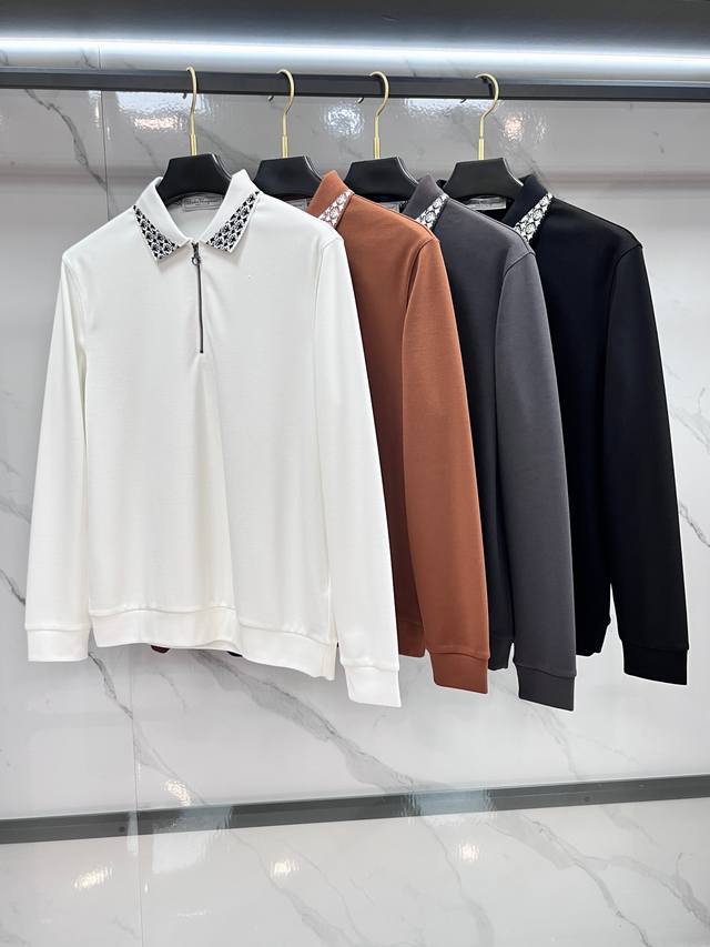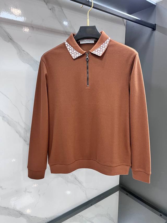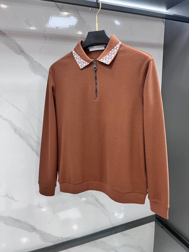 Ferragamo - 2025 New Arrival, Fashionable High-End Men's Fleece-Lined Polo Shirt, Available in Stores. Clean and crisp design, a must-have for CEOs and elites. Comfortable and relaxed yet sophisticated, the small stand-up collar breaks away from traditional constraints, adding a youthful and fashionable touch and enhancing brand recognition. Made with imported top-grade high-density 100% premium Pima cotton, it's incredibly soft and comfortable against the skin, with a great texture, cool and breathable, and wrinkle-resistant. A great piece, perfect for layering or wearing alone. Those who like it can stock up early! Hurry and grab yours! Size: M-XL