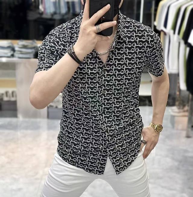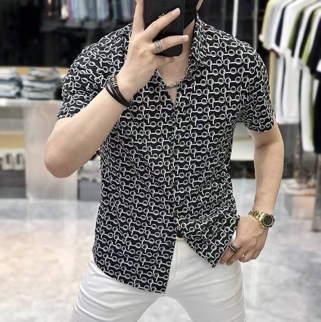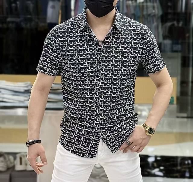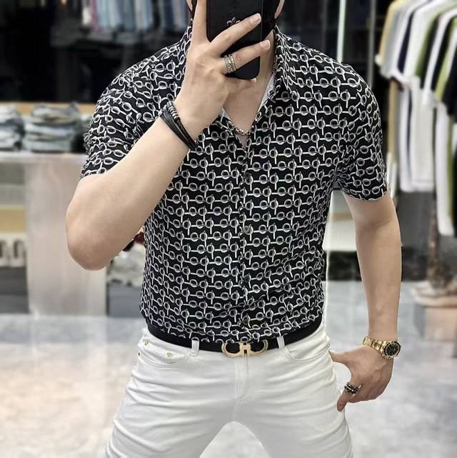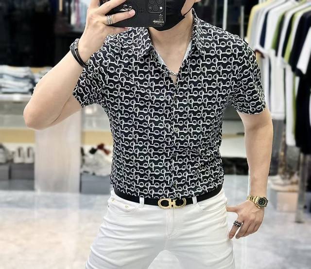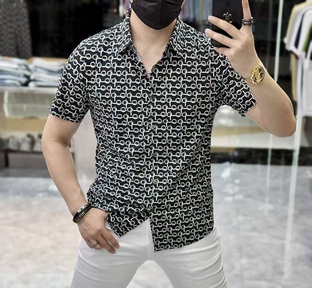 Ferragamo 2025 Spring/Summer Fashion Hot Selling Short-Sleeve Shirt, sourced from a trading company, in perfect condition, considered a store-quality item, a predictably hot seller. Made of high-end custom imported long-staple cotton fabric, masterfully tailored, with unparalleled texture and excellent skin-friendliness. A striking aesthetic design, exquisite craftsmanship, smooth lines, and perfect styling! Effortlessly elevate your fashion sense, highly recognizable, and looks amazing on. Extremely meticulous and rigorous workmanship, with neat and fine stitching. Suitable for both business and casual occasions! Retail sizes M-2XL. Model 178cm, 145kg wears size L (