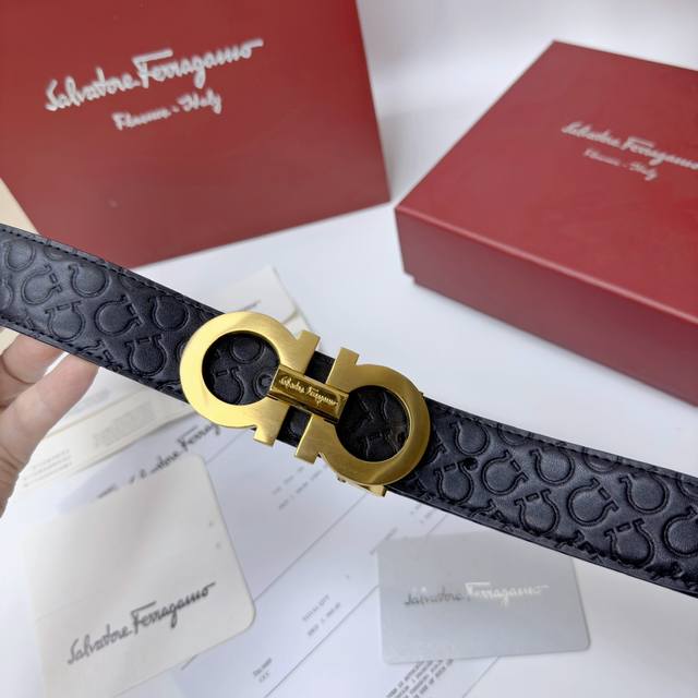 Ferragamo belt, cowhide body, pure copper hardware buckle, clear logo on the back, and red gift box packaging. Salvatore Ferragamo belt counters sell high-quality imported cowhide body with exquisite oiled edges and original steel buckle that will not fade. Width 3.5cm, comes with a hole punch,