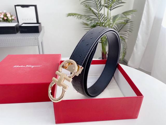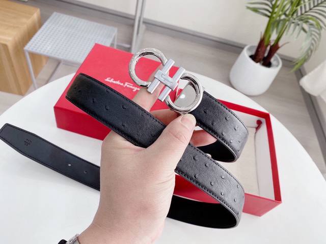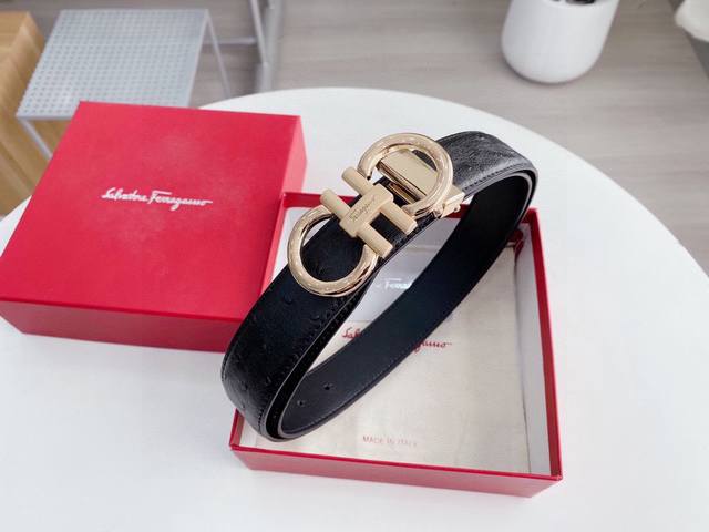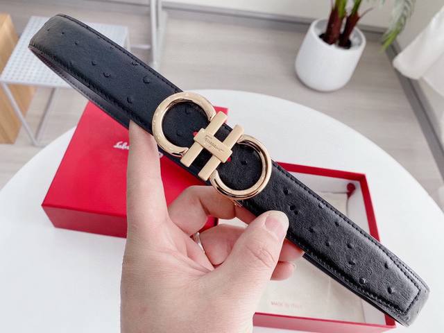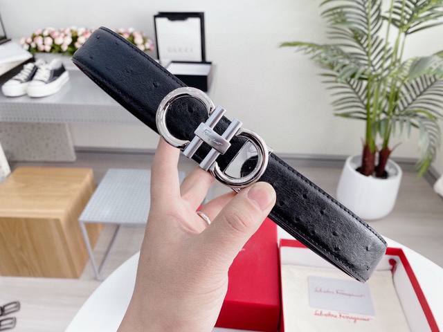 Ferragamo belt, universal style, width: 3.4cm. New pure cowhide leather with a new, elegant and exquisite buckle, embodying high-end taste. Real product photos taken with iPhone; looks great on. This belt comes with original packaging.