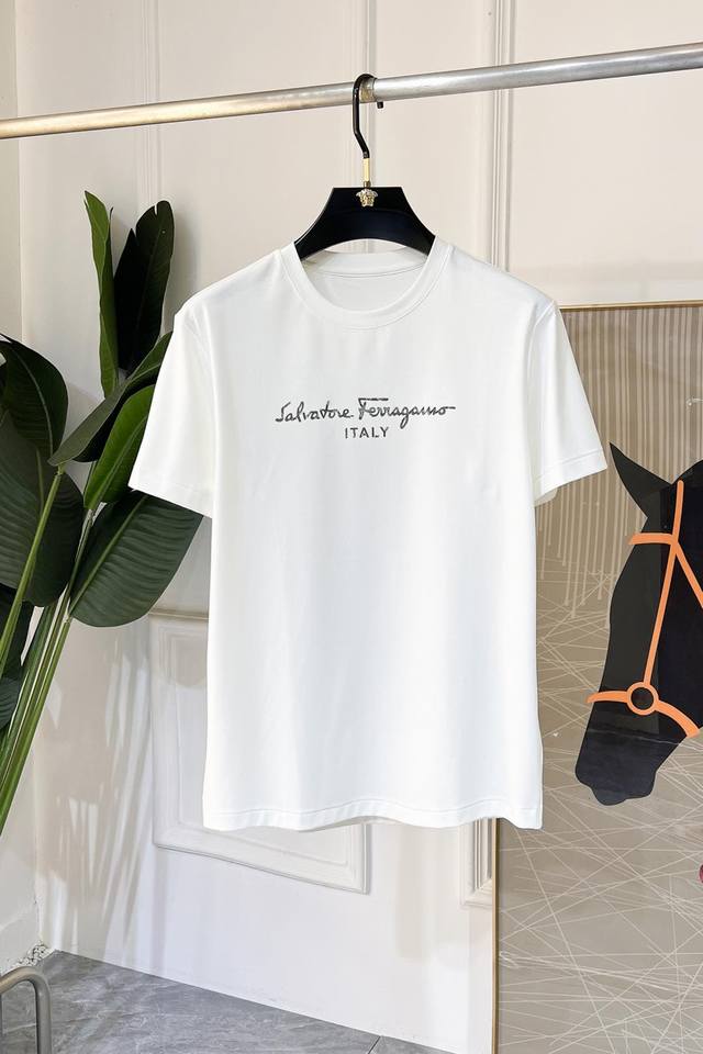 Return/Exchange after Chinese New Year: Ferragamo 2025Ss Year of the Snake Spring/Summer Premium Short-Sleeve T-Shirt, official website synchronized, high-end quality, custom-made with top-grade mercerized cotton fabric, 1:1 production from a top factory, fashionable high-end brand heavy craftsmanship, logo design, soft and delicate to the touch, comfortable against the skin, versatile and casual, looks great, a must-have for handsome and trendy men. Sizes: M-3XL. Model 175cm, 145kg wears L,
