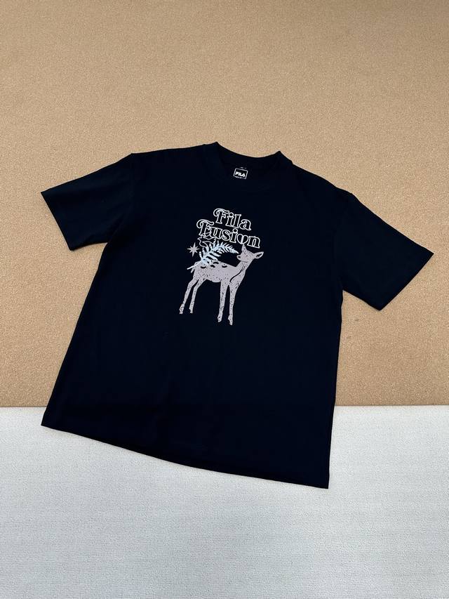 Fila 25Ss summer new deer print short-sleeved T-shirt for couples, official webs