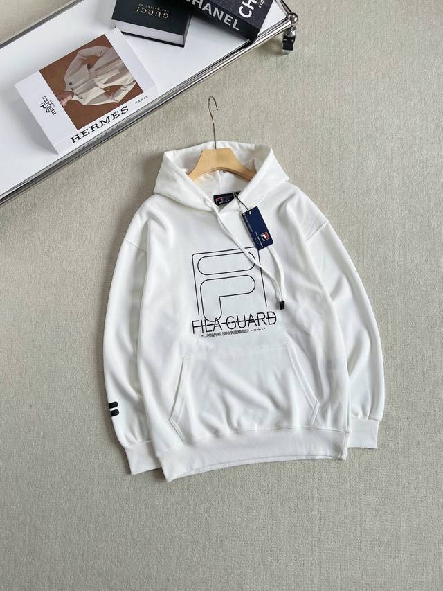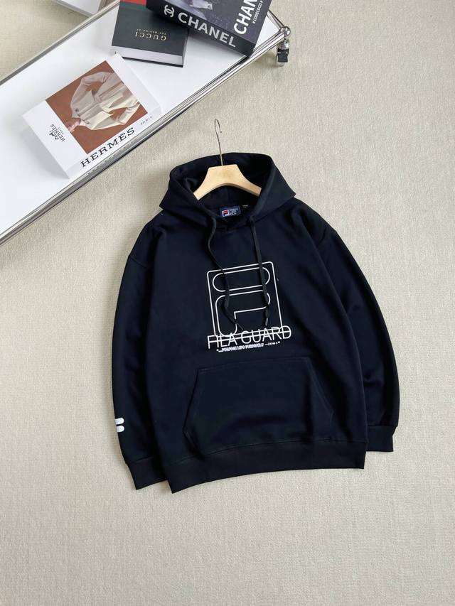 Fila Fusion Men's Hooded Sweatshirt, New Fashionable Pure Cotton Knit Top. Made of cotton-polyester stretch fabric, the fabric has a clear texture, is durable and wear-resistant, smooth to the touch, and has good stretch. The fabric is thick, smooth, and comfortable to wear. The large Fila logo print on the chest, combined with small logo details on the sleeves, adds a touch of modern style. The casual hooded design features stylish windproof ribbed cuffs and practical kangaroo pockets. The style is universally flattering and a trendy streetwear staple! Colors: Black, White Sizes: M-2XL Bust, Length, Sleeve, Shoulder Width M: 108 68 60 48 L: 112 70 61 49 XL: 116 72 62 50 2XL: 74 63 51