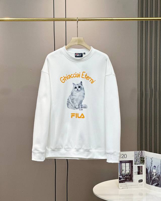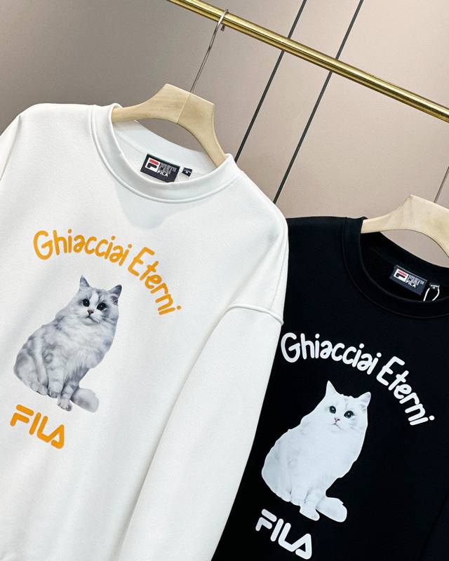 Fila Gao Yuanyuan's Same Style Cat Sweatshirt, Latest Pullover Silver Fox Fleece Crew Neck Sweatshirt, Casual Couple Style, Top Version DDD Sizes: S~XL DDD Colors: Black, White DDD Details: 1:1 replica, heavyweight, latest style from the official store! A must-have! Absolutely a top-quality, exclusive item! Made of 460g high-weight silver fox fleece, incredibly thick and luxurious!! DDD Original print details, printed with imported German digital printing machines, resulting in super clear prints that won't crack even after prolonged wear