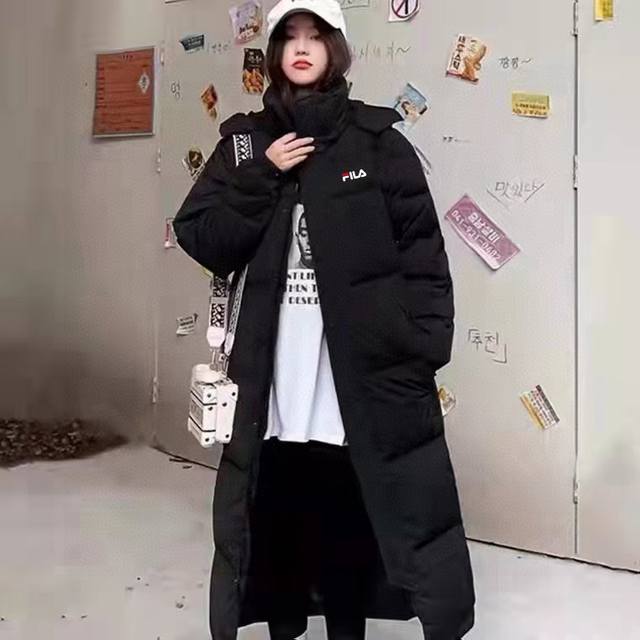 Fila Korean actress Kim Yoo-jung's style, same as in department stores, Korean poster style, mid-length over-the-knee thick down jacket, unisex, couple style, filled with national standard white duck down! Fully filled, good elasticity!