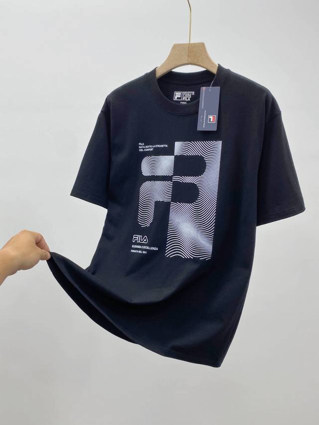 Fila Official Men's Short-sleeved T-shirt Summer New Simple Casual Commuter Round Neck Knitted Short-sleeved T-shirt!