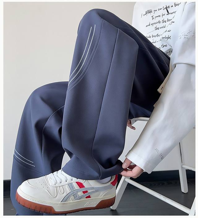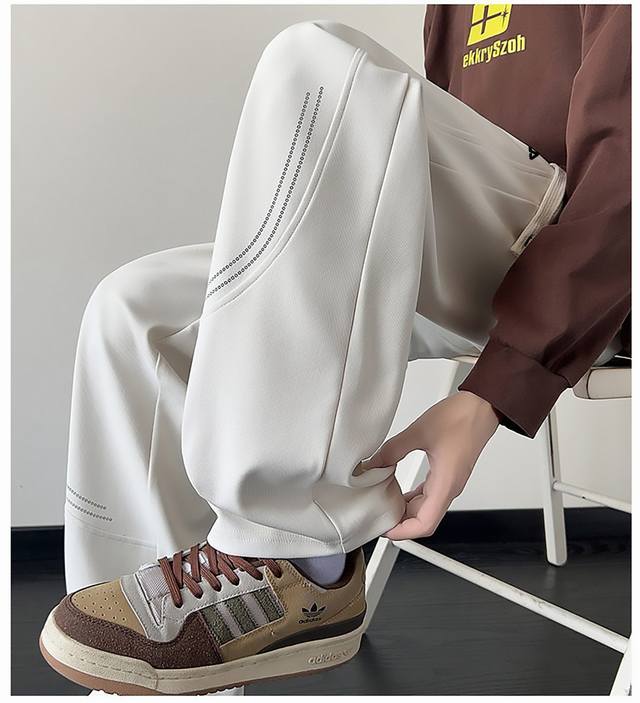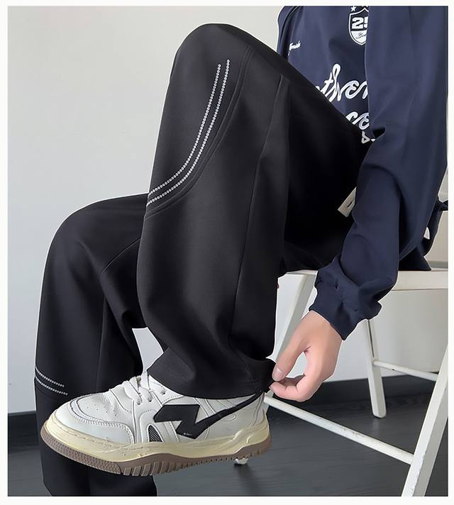 Pants with loose fit and perfect details woven fabric, wear-resistant and stain-resistant three-dimensional cutting loose fit three-dimensional silicone label will not crack or fall off after repeated washing. Unisex couple's style