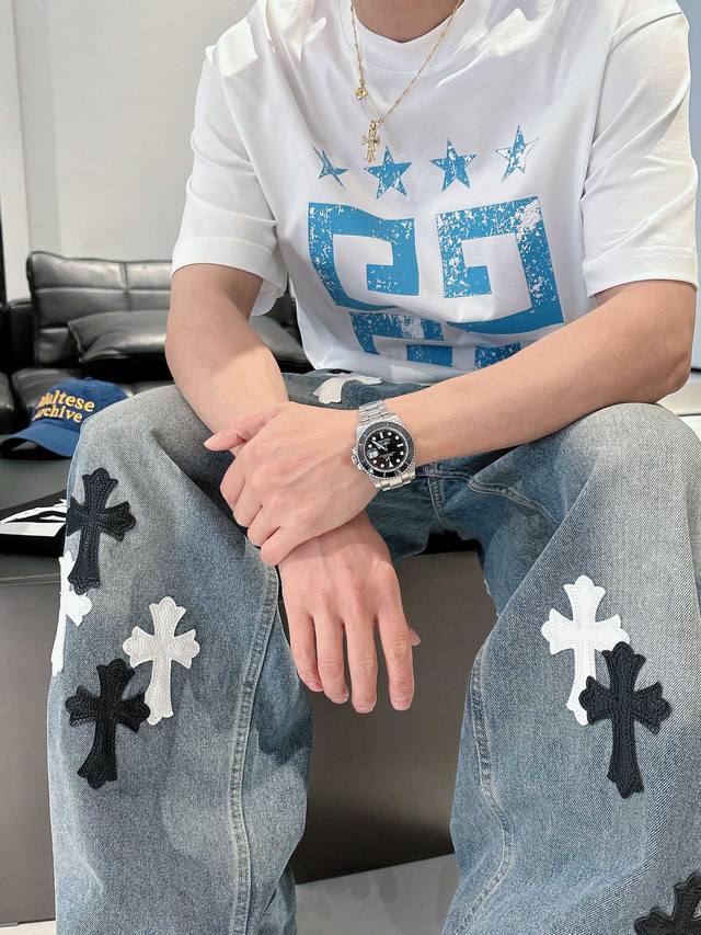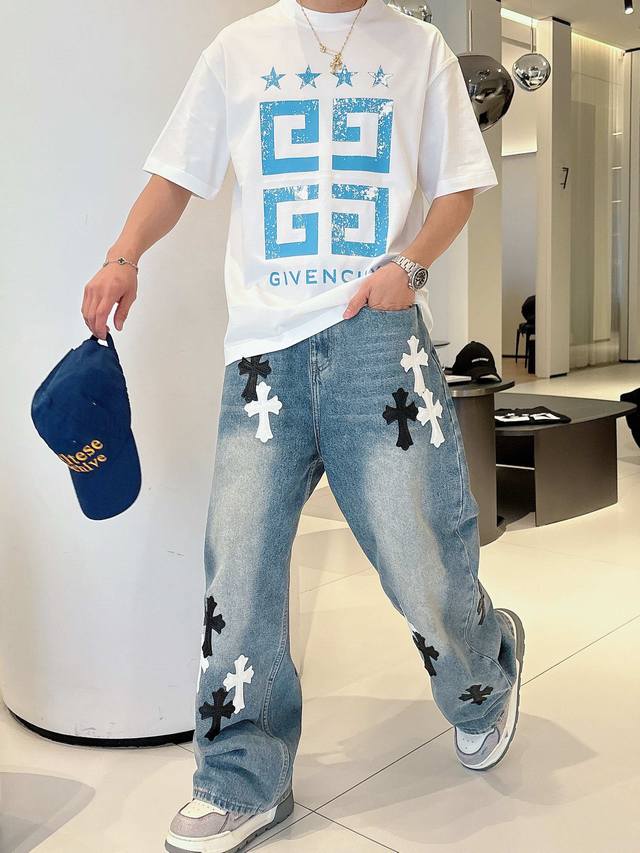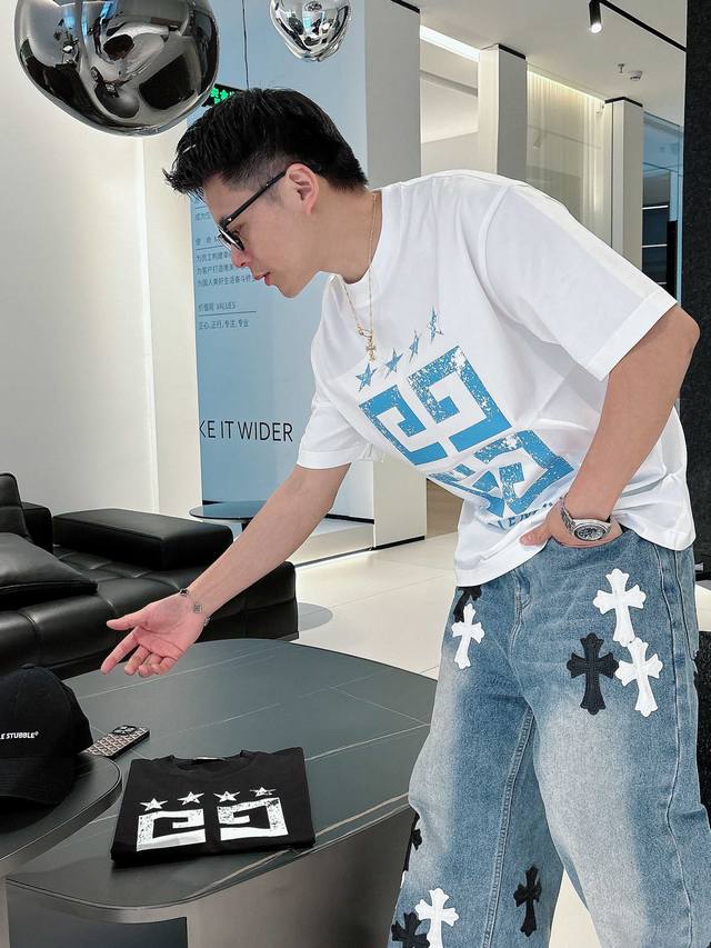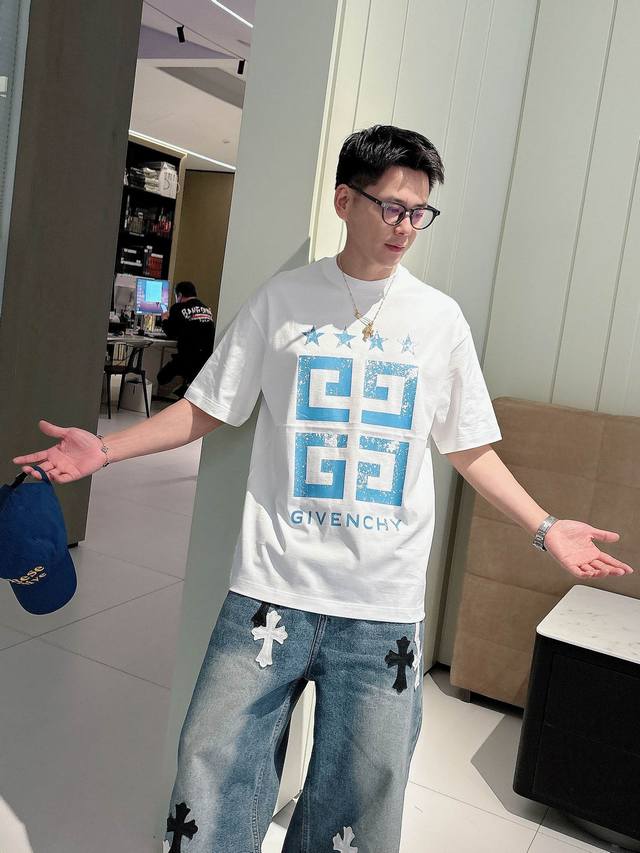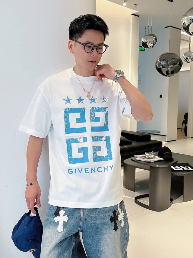 Givenchy 2025 Spring and Summer New Releases Newest Short-sleeved Round Neck T-shirt High-end Custom Design Avant-garde Fashion! Brand Logo Heavy Craftsmanship Design High-end Custom Mercerized Cloud Cotton Fabric. Soft to the Touch. Comfortable to Wear. Exquisite Sewing at the Counter Level. Fine Workmanship. Invincible and Handsome Upper Body Effect! A Must-Have for Men!