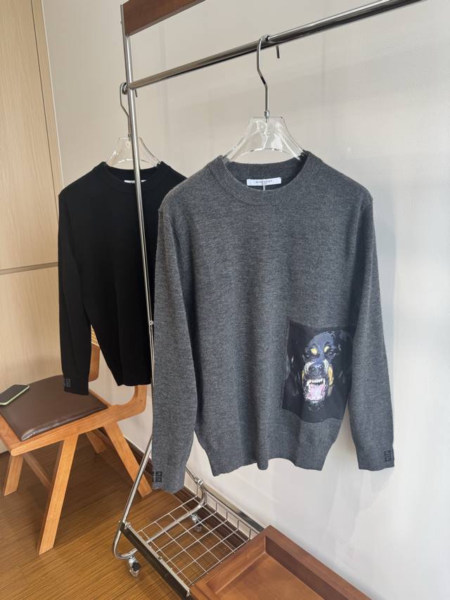 Givenchy 25Ss Autumn/Winter New Arrival Sweater - Exclusive Deal! Imported original technical wool, finely knitted throughout, color-blended weave, pure handcraftsmanship presents an extremely high-end look, highlighting the wearer's taste and exquisite luxury craftsmanship! Custom-made original ribbed detailing looks amazing on! Same style as boutique items, unisex, sizes: M-3XL. Black/Grey (DDD)