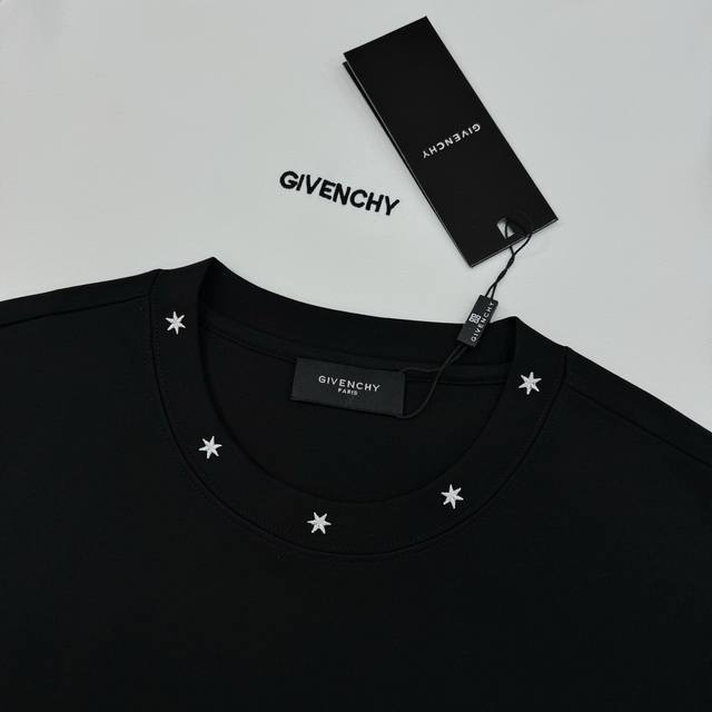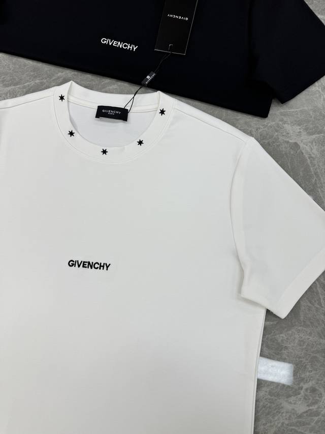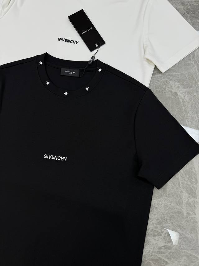 Givench*Y Givenchy 2025S Limited Edition. New Modal Versatile Item. With its simple yet sophisticated design, it once again showcases the charm of this classic brand to the fashion world. The use of black and white tones is like a bright spot, and the five-pointed star embroidery on the neckline is stylish and elegant. The Givenchy logo is embroidered on the chest. Made from select 300g modal fabric, it is soft and comfortable! Highly recommended! Colors: Black, White. Sizes: M-3XL Slim fit! S and 4XL can be custom-made. For someone 175cm tall and weighing 140kg, L is recommended.