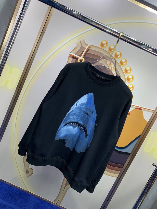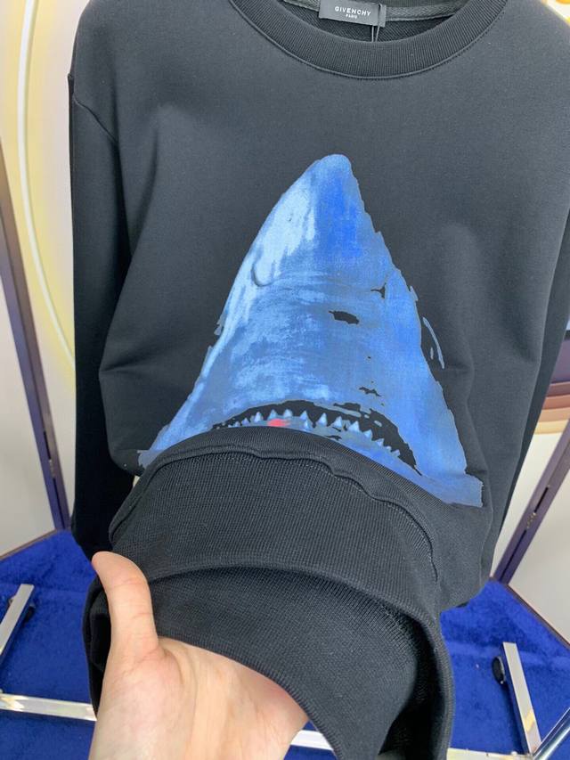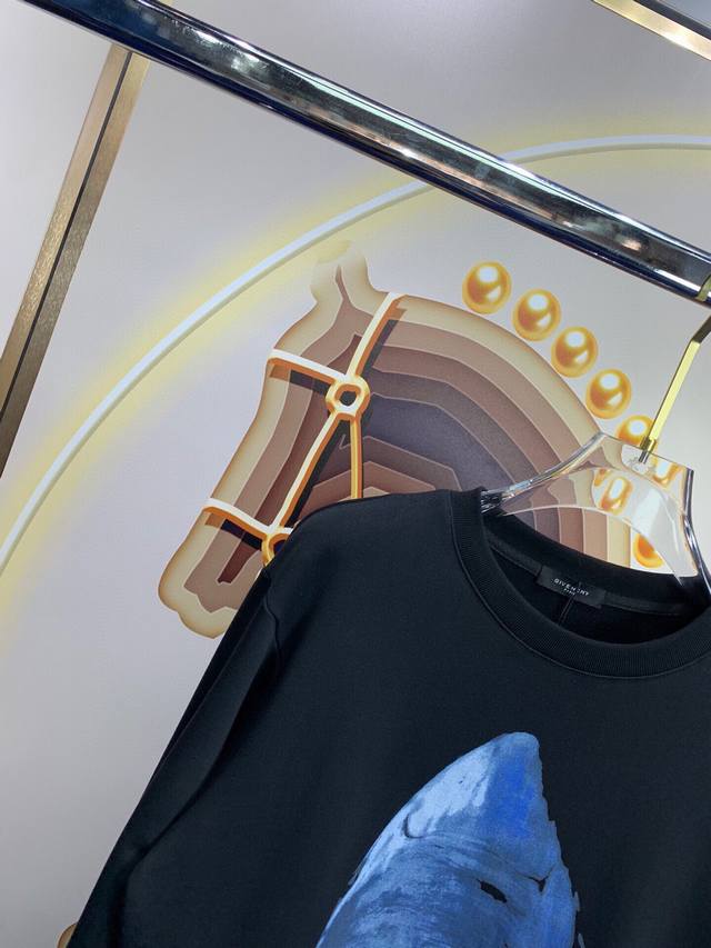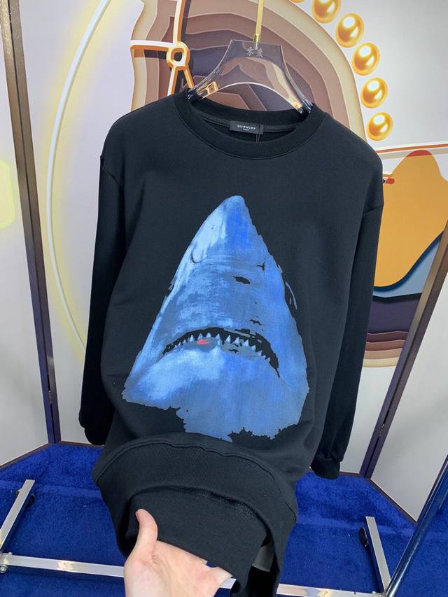 Givenchy, new classic shark print round neck long sleeve terry sweatshirt for men and women, details are a one-to-one replica of the original version,