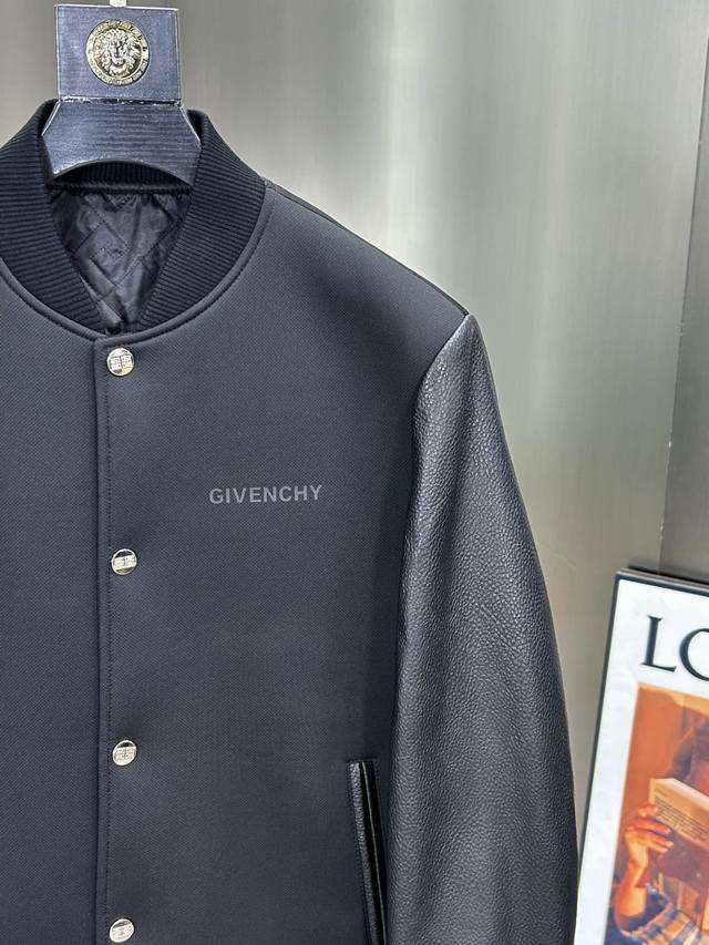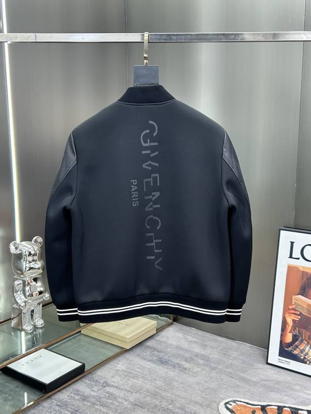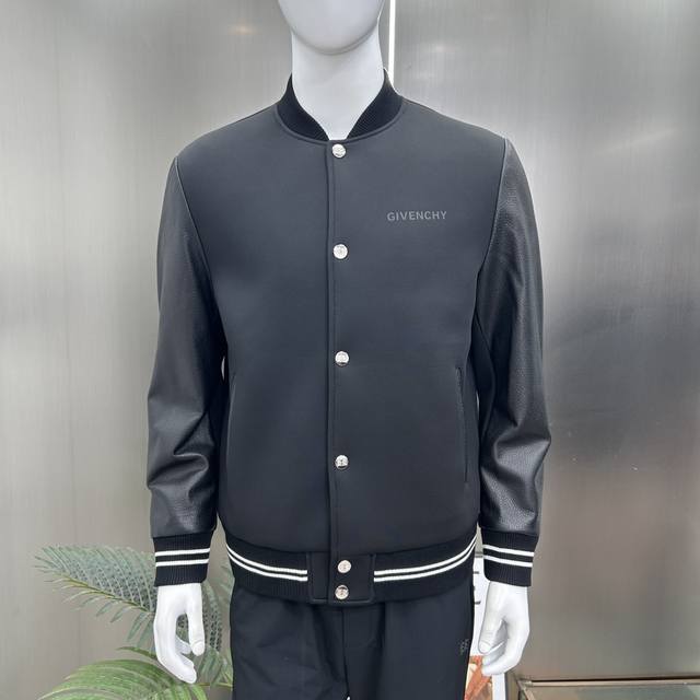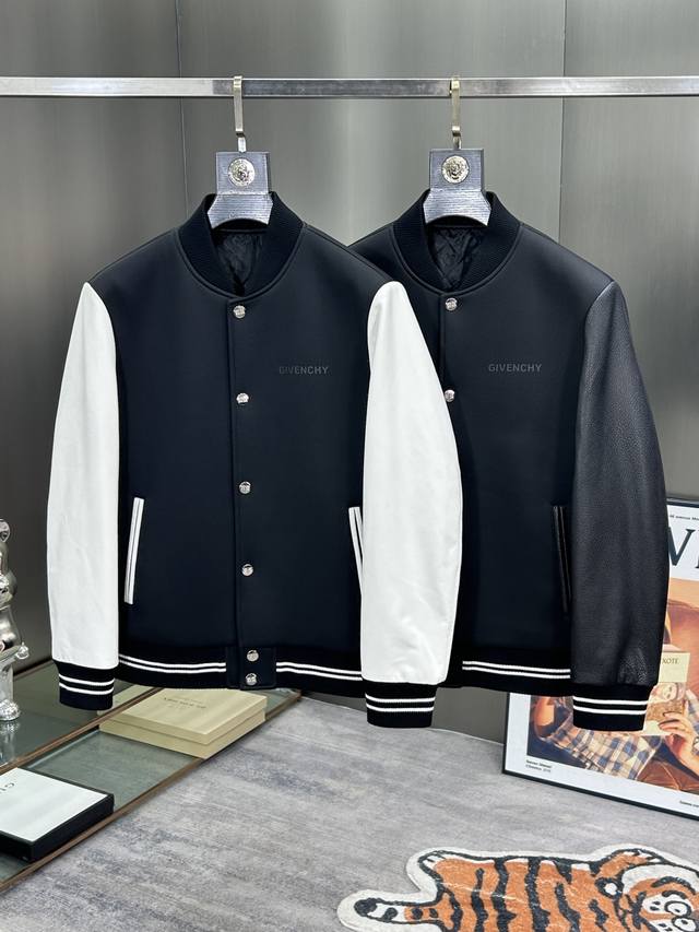 Givenchy's latest Givenchy 2025 Spring/Summer 2025 baseball collar casual jacket is high-quality, made of composite fabric with genuine leather patchwork sleeves. The shape, fabric, and hardware are all custom-made. The synthetic fabric is breathable and comfortable, and the logo features a trendy print design. It looks stylish and unconstricting, and is incredibly comfortable! The whole piece is super cool and classy! It's not bulky, showcasing a stylish and individual vibe!