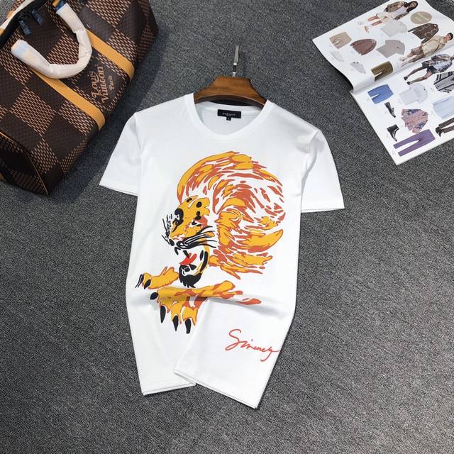 Special offer Givenchy 20 Spring/Summer boutique lion print pattern men's short-sleeved T-shirt brand exclusive logo lion, rich visual, and very coordinated, wearing a versatile fashion double mercerized cotton fabric soft and delicate super real shooting close contact texture size M-4Xl