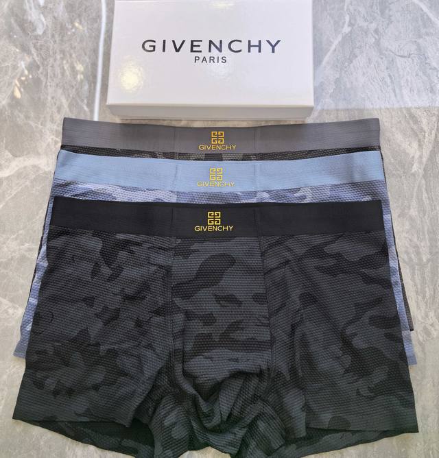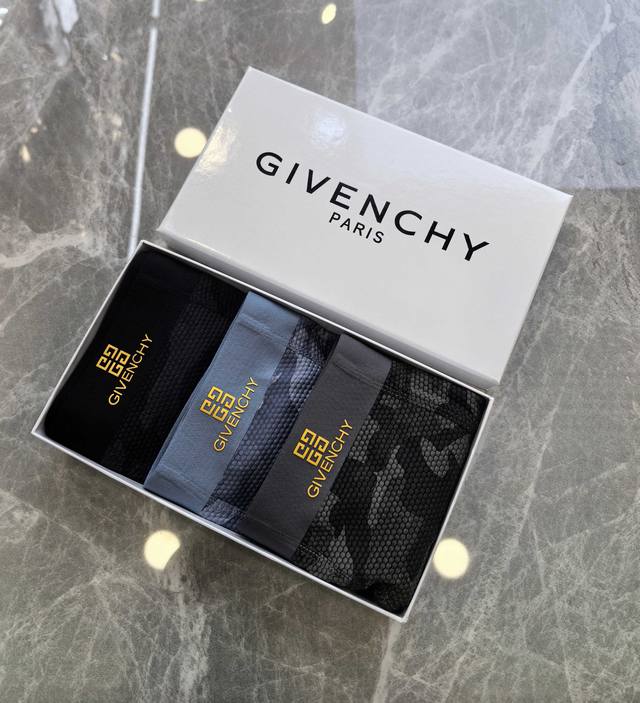 Givenchy 1 box of 3~Original quality! Must-have men's boxer briefs! High-grade ice silk material, scientifically blended with 83% nylon and 17% spandex using seamless cutting technology, silky smooth, breathable and comfortable! Underwear should not be compromised; it must be soft and breathable. The waistband features a logo decoration with a printed plastisol printing process! The smooth, close-fitting texture feels even more delicate. High-end custom dyeing and color fixing ensure outstanding quality. Sizes: L, XL, 120-200 lbs. Note: Underwear is non-refundable and non-exchangeable.
