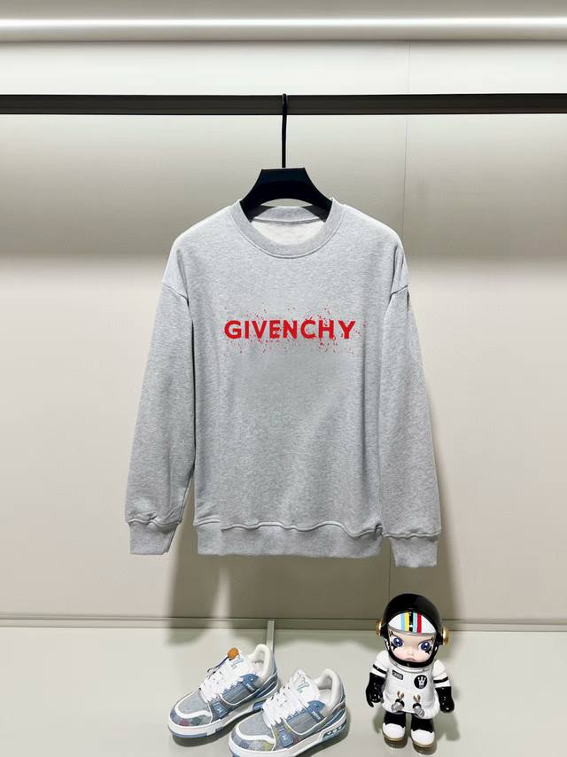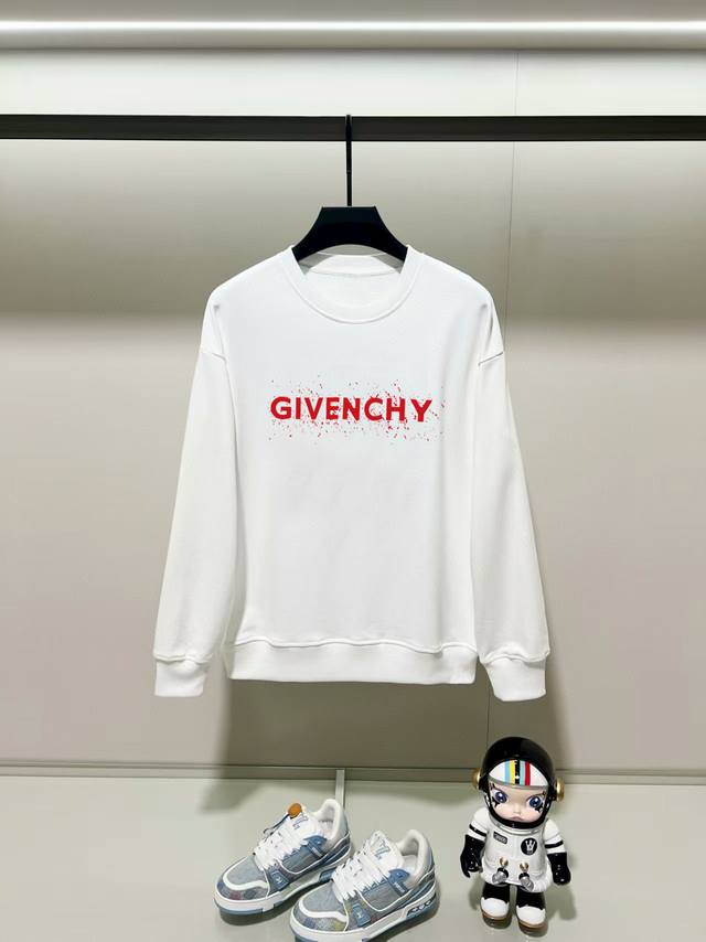 Givenchy, 2025 Autumn/Winter New Crew Neck Long Sleeve Sweatshirt. Features a precision print on the chest, made from premium double-ply cotton twill fabric. The 420g/m? high-weight fabric ensures a crisp, substantial feel and a luxurious, comfortable texture against the skin. Unisex. Colors: Black, White, Gray. Sizes: XS-XL.