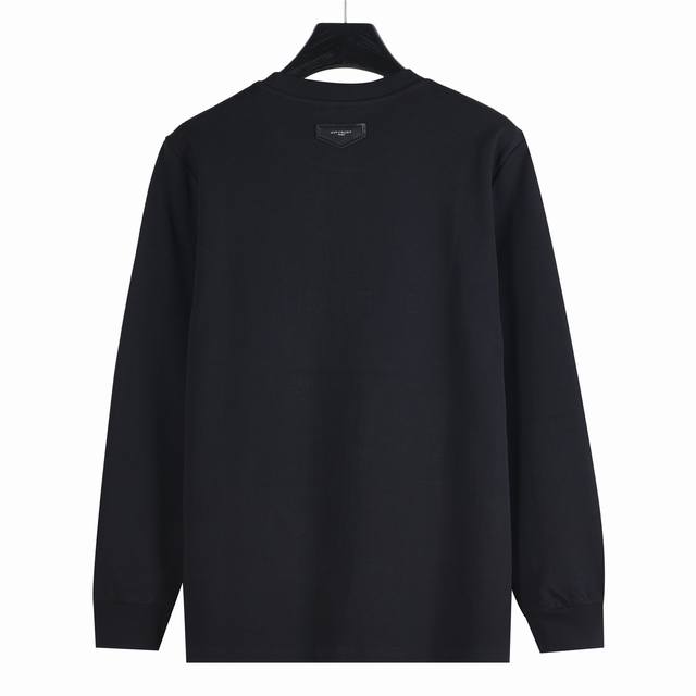 Givenchy 25Fw Checkered Logo Embroidered Long-Sleeve T-Shirt. Made of custom-woven, dyed, washed, soft long-staple cotton, 310g/m?, latest boutique style. A classic and versatile long-sleeve base layer. Features a simple yet sophisticated design with a metal triangle logo embroidery on the chest and a shield-shaped leather logo patch on the back collar. Extremely soft against the skin. Unisex. The loose fit flatters all body types, combining style and functionality. Colors: Black, White. Size: M-XL.