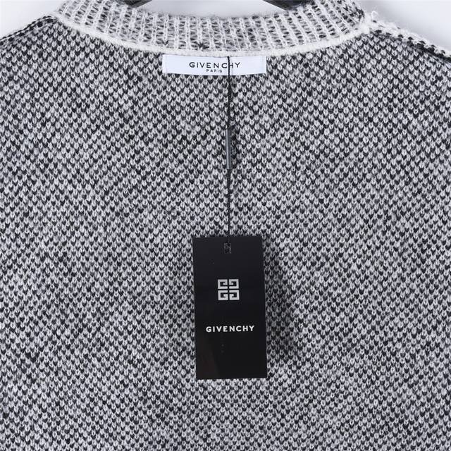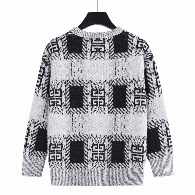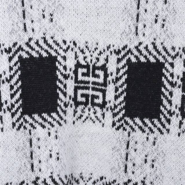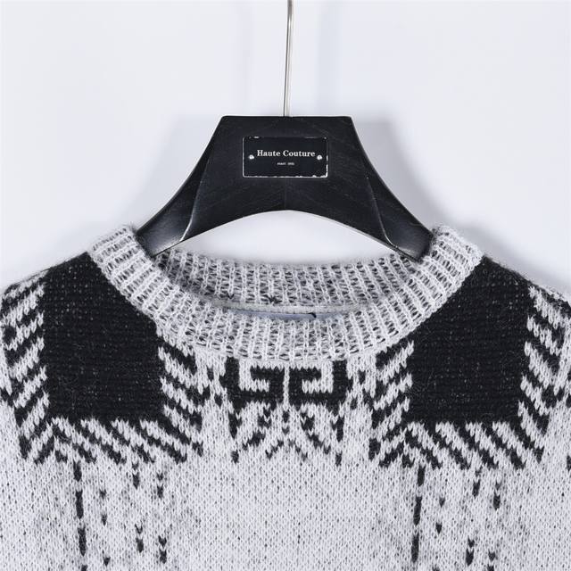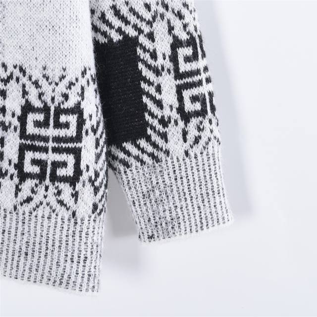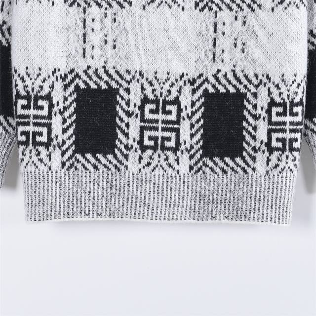 Givenchy 25Fw Full-Pattern Mohair Knit Sweater. Made with high-count 15-count mohair imported from Taiwan, this sweater is knitted using a Stoll 530 knitting machine with a 6.2 needle and a four-color sesame dot jacquard pattern. The entire sweater is hand-stitched, with each stitch perfectly matched to the original, and the pattern is a 1:1 replica. The finishing process utilizes the most environmentally friendly and antibacterial nano-washing technology. Size: S-XL