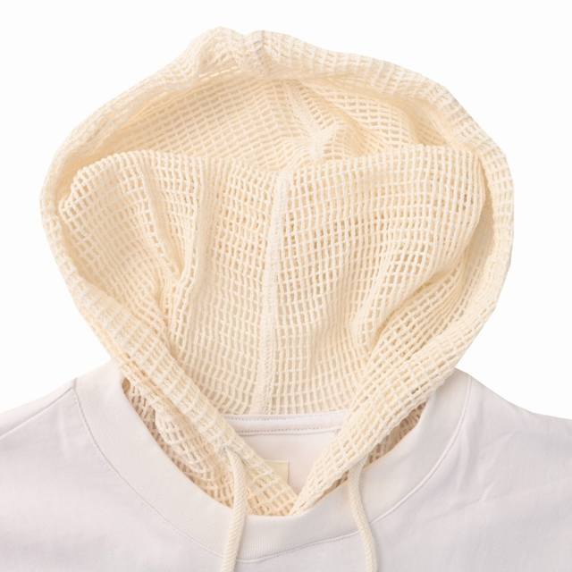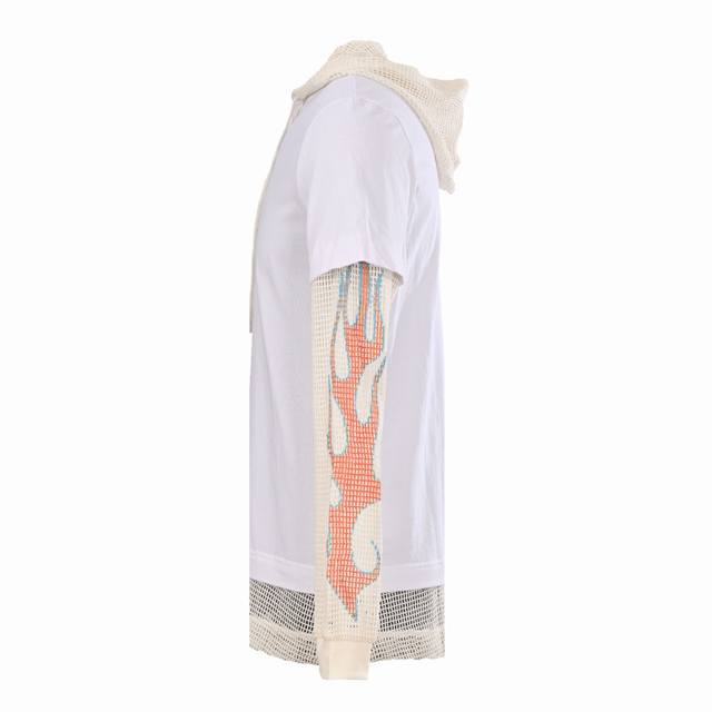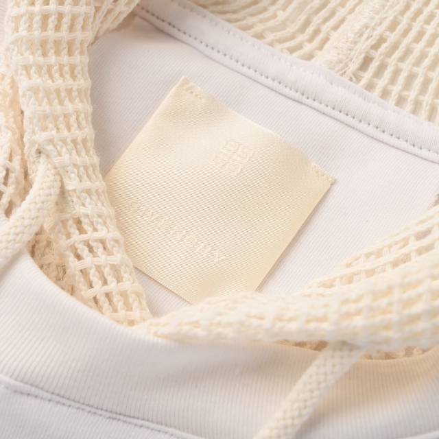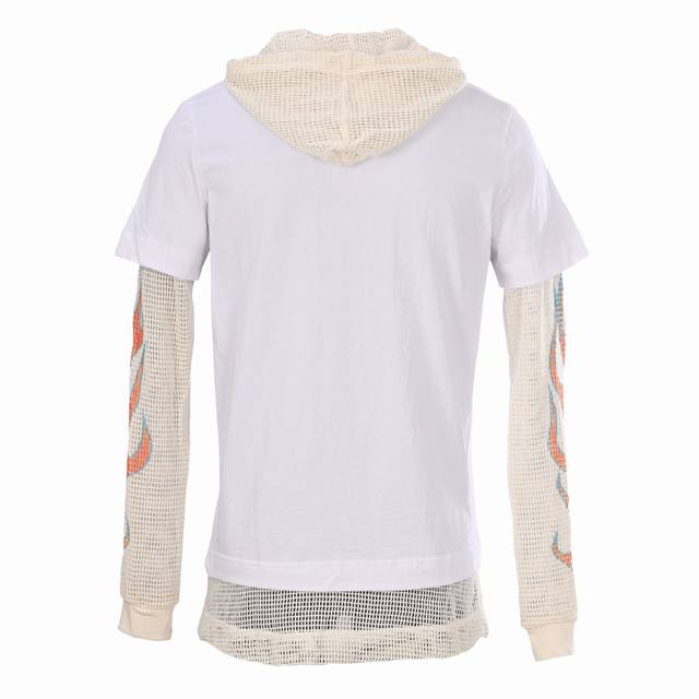 Givenchy Gvc Layered Flame Mesh Sleeve Hooded Sweatshirt. Made with custom double-yarn fabric, featuring 1*1 Solona ribbing and custom dyeing. The all-cotton mesh fabric has a beautiful drape. The fabric is hand-printed with stretchy adhesive, a complex and time-consuming process. Each mesh element is meticulously hand-finished. Custom main label. Fitted. Size: SL.