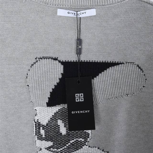 Givenchy x Disney Collaboration: Mickey Mouse Jacquard Crew Neck Sweater. Givenchy is teaming up with Disney for a limited-edition New Year collection. Classic Givenchy elements are fused with Disney cartoon characters. The entire collection is not only childlike and fun, but also exudes a cool and edgy American retro street style, offering a unique and innovative look! This capsule collaboration, designed by the current creative director, uses the classic Givenchy logo and Disney characters as jacquard patterns. As a pioneer of world animation, Disney incorporates various top-tier cartoon characters from various IPs into this collection, presented through prints on the garments! This T-shirt features a print of Disney's Oswald the Lucky Rabbit, a playful and clever artistic fusion that makes the wearer look cute and youthful, instantly radiating energy! The exquisite imported environmentally friendly printing technology ensures even printing, no odor, and durability, preventing cracking! Ddd's custom-woven 100% wool fabric offers exceptional comfort against the skin, combining style and practicality! The classic crew neck cut and exquisite, smooth stitching details make it versatile for everyday wear, allowing you to savor its beauty! Color: Gray Size: S-XL