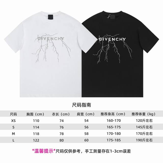 Givenchy#Gifanxi reflective lightning print short-sleeved T-shirt, official original, customized Giv cotton double yarn fabric, soft and delicate, solid, comfortable and breathable, not easy to deform, the thread is fixed and dyed without color difference, Os loose drop shoulder version, the same style for men and women, printed with imported environmentally friendly reflective materials, clear texture, three-dimensional effect. Different from the market currency, the original auxiliary materials are complete with three labels, no pressure in and out of the counter