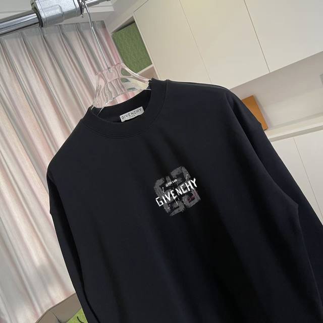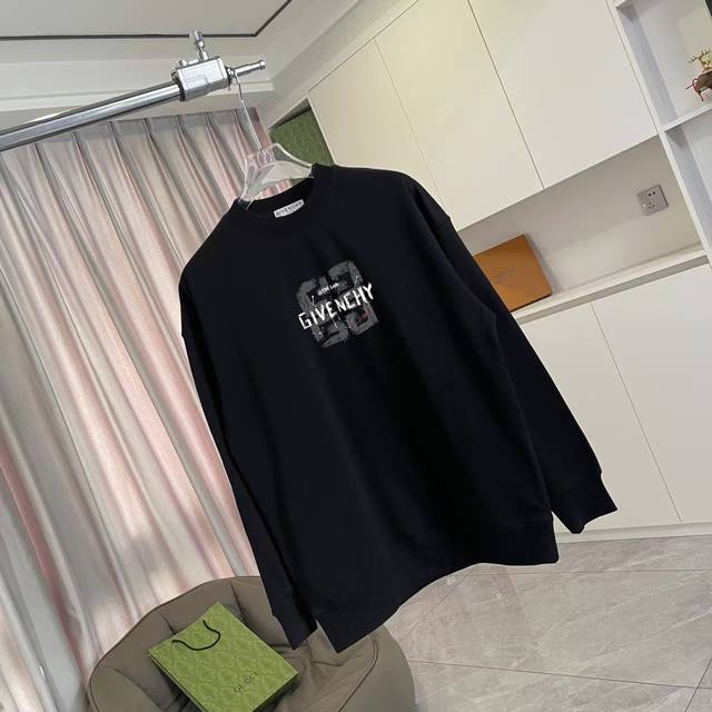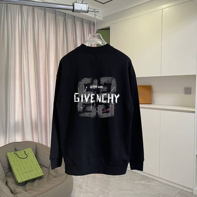 Gvc*Givenchy 2025 Autumn/Winter New Style Unique Letter Logo Print Custom Fabric 400G Crew Neck Sweatshirt Unisex Sizes: SML XL Colors: Black White
