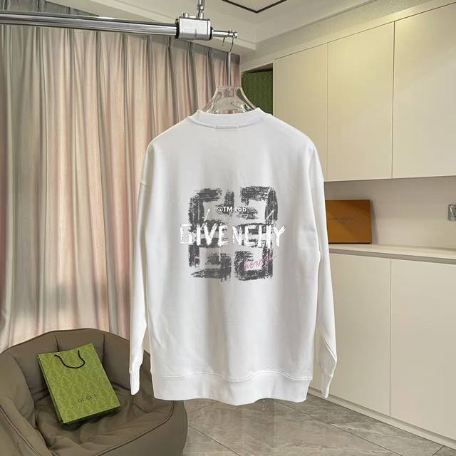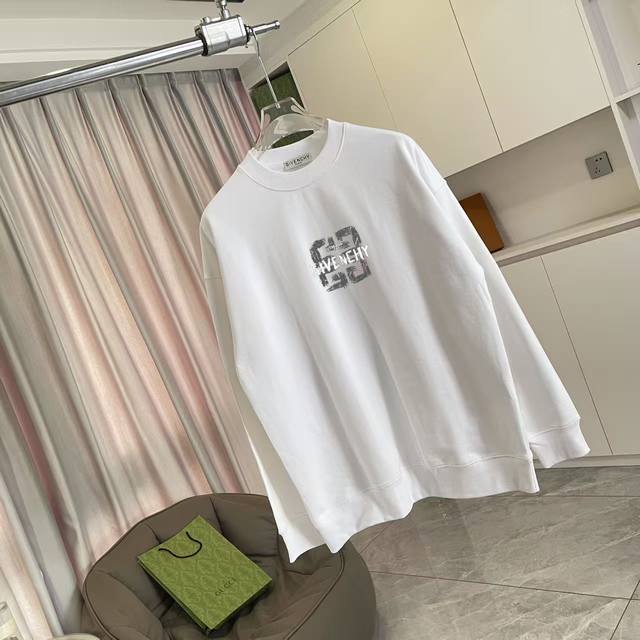 Gvc*Givenchy 2025 Autumn/Winter New Style Unique Letter Logo Print Custom Fabric 400G Crew Neck Sweatshirt Unisex Sizes: SML XL XL (5 sizes) Colors: Black White