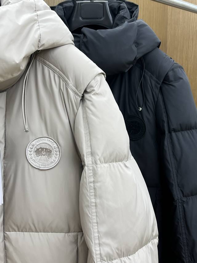 Autumn/Winter Canada Goose Down Jacket, detachable sleeves and hood, two-in-one design. The sleeves can be removed to create a vest, or worn with a hood or stand-up collar. (Zhang Linghe's same style down jacket) Two-in-one design, can be disassembled into a vest. (I actually love this slightly thick down jacket!) Umba Men's Detachable Down Jacket. (Umba down jacket features detachable zippered sleeves, transforming it from a coat into a vest. This piece is made of Pima cotton fabric, offering a matte finish and a dry feel. The Umba coat has a stylish and modern silhouette and is highly functional.) Sizes: S-XL