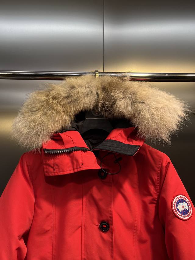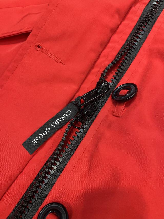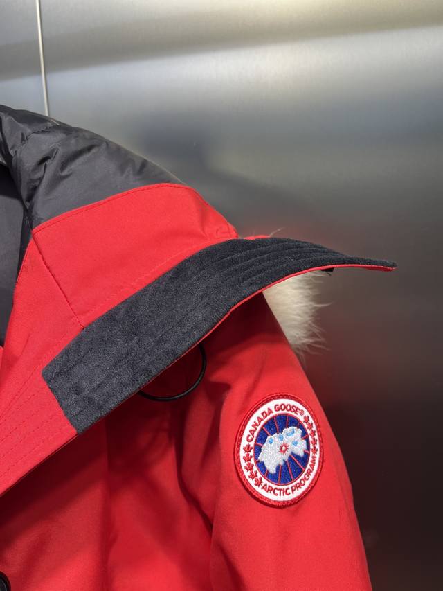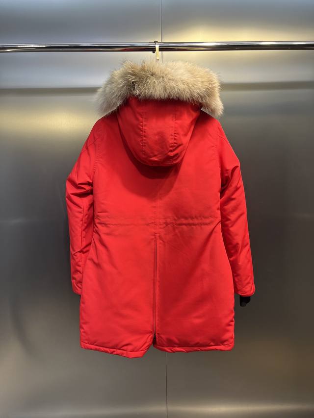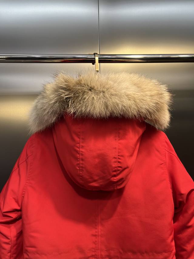 down is synchronized with authentic white duck down, which is fluffy and does not clump. The filling is done by an electronically controlled down filling machine. The zipper is customized with a genuine Ykk zipper head, which is high hardness and does not get stuck. The fur collar is sourced from the same manufacturer as the wolf fur. The Canadian wolfskin auction is held at the same venue as the official Big Goose auction. The fur collar is made of wolf fur.