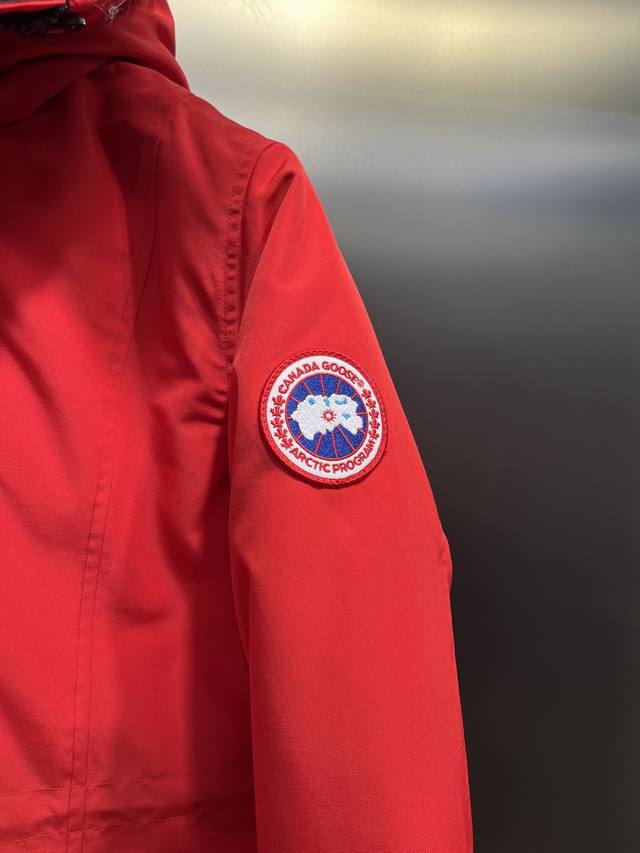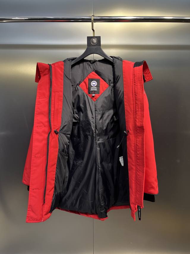 2 La Canada Goose Canada Goose Rossclair Parka women's down jacket, made from genuine original clothing mold, all accessories are customized by the original factory. This model is very distinctive, the back hem can be zipped up to become a swallowtail style, slanted pockets, and a layer of hidden pockets underneath. It has become a hot seller on the official website.
