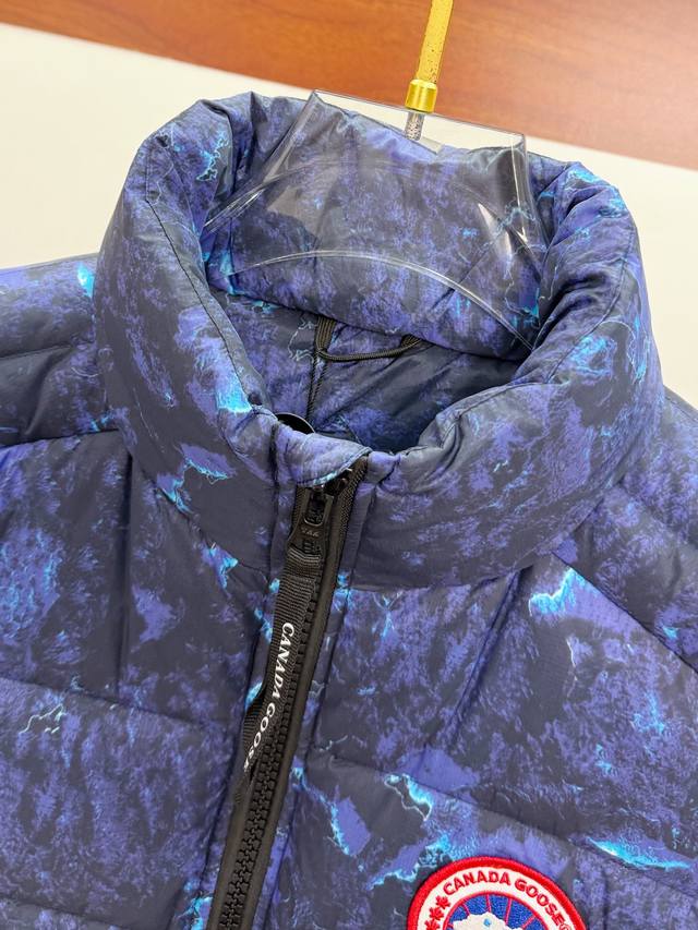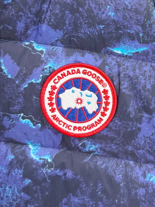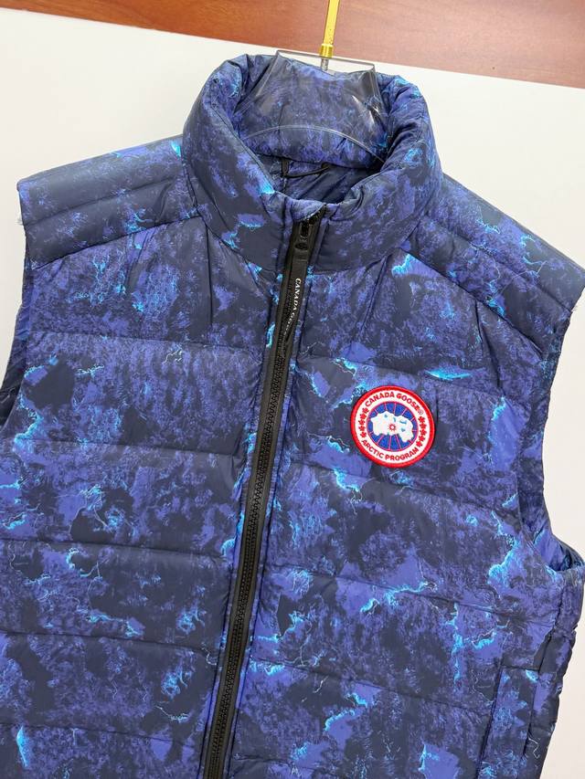 Canada Goose Fall/Winter New Down Vest. Perfect for layering with sweaters and sweatshirts for warmth without feeling restrictive. Made with 95% white duck down, lightweight and flowy for all-around warmth! It looks stylish and sophisticated , combining warmth and style. Multiple stitching along the center line creates a neat and symmetrical look, ensuring comfort and warmth. The logo on the chest adorns the entire vest. Its unique style is deeply ingrained. Youthful yet incredibly warm, simple and elegant. Unisex. Sizes: XS-2XL.