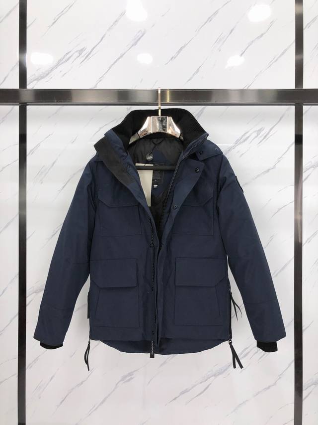 Style: Canada Goose 26 styles for men and women. Color: Dark Blue. Factory direct supply: Available for global purchasing agents, WeChat merchants, brick-and-mortar stores, Tmall, high-end stalls, and studio partnerships. Free shipping available! 26 Canada Goose Maitland parkas, featuring the same design as Jack Ma, with a new, shorter, fur-free collar. Arctic and Antarctic expeditions choose Canada Goose for their cold-weather protection, making it the Rolls-Royce of down jackets. Industry-leading anti-counterfeiting chip sensor. Custom embroidery logos are custom-made on imported Behringer embroidery machines, surpassing the industry's highest standards. Imported Korean 21s polyester-cotton blend fabric with a TC85 waterproof coating, resistant to water, wind, and abrasion. New national standard 80% white duck down with an average fill weight of 100 grams leads the industry. 100% nylon lining with double-layer sealing to prevent down shedding, and seamless ribbed cuffs. Collar featuring Canadian Western Wolf fur.
