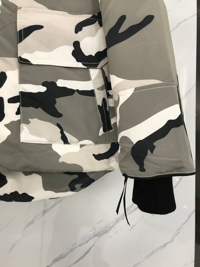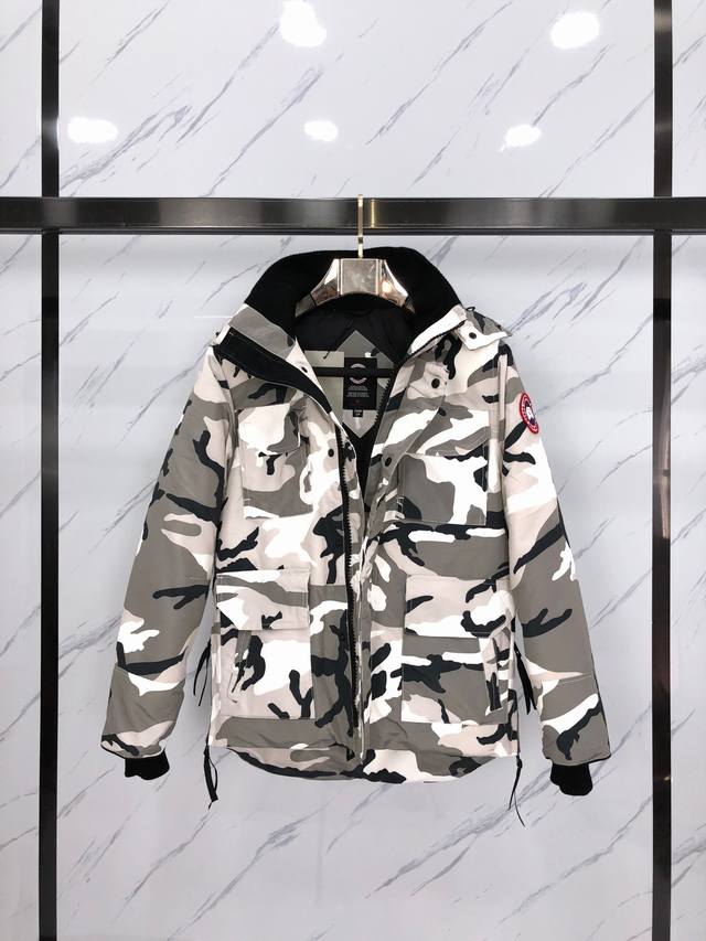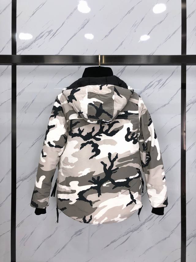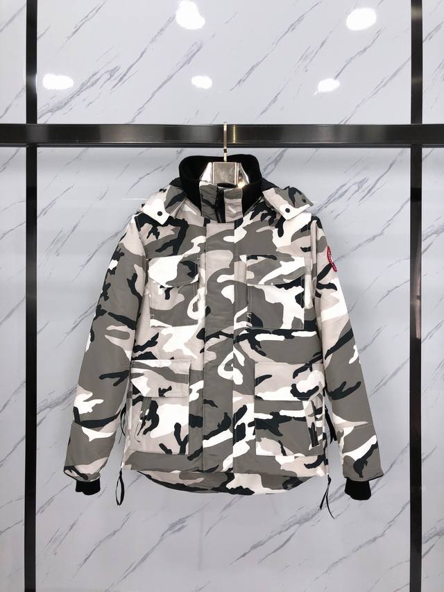 Style: Canada Goose 26 styles for men and women. Color: White Camouflage. Factory direct supply: Available for global purchasing agents, WeChat merchants, brick-and-mortar stores, Tmall, high-end stalls, and studio partnerships. Free shipping available! 26 Canada Goose Maitland parkas, the same style as Jack Ma's, with a new, shorter, fur-free collar. Arctic and Antarctic expeditions choose Canada Goose for cold-weather protection, making it the Rolls-Royce of down jackets. Industry-leading anti-counterfeiting chip sensor. Custom embroidery logos on imported Behringer embroidery machines, exceeding industry standards. Imported Korean 21s polyester-cotton blend fabric with TC85 waterproof coating, water-repellent, windproof, and abrasion-resistant. New national standard 80% white duck down, with an average fill weight of 100 grams, leads the industry. 100% nylon lining with double-layer sealing to prevent down shedding, and seamless ribbed cuffs. Collar with Canadian Western Wolf fur.