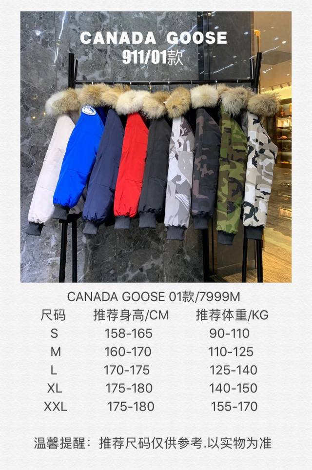 Canada Gooes 01 Style DDD: Black Camouflage Unisex DDD Mid-range: Raccoon Fur 570 Wolf Fur DDD Factory Direct Supply: Supplying global purchasing agents, WeChat merchants, physical stores, Tmall, high-end wholesalers and studios, free drop shipping available! Ddd Canada Goose Chilliwack Bomber Jacket 01 Style, unisex, Putin's style, chosen by North and South Pole expedition teams for cold-weather gear, the Rolls Royce of down jackets. Ddd 911 industry-leading anti-counterfeiting chip sensor. Ddd Imported Behringer embroidery machine custom embroidered label, highest level exceeding industry leadership. Ddd Imported Korean 21-count polyester-cotton blend original fabric, TC85 waterproof coating fabric, water-repellent, windproof and wear-resistant. Ddd New national standard 80% white duck down average 450g fill weight, industry-leading fill weight. Ddd features a 100% nylon lining with a double-layer sealing design to prevent down leakage, and seamless ribbed cuffs! It also boasts a Canadian western wolf fur collar. Ddd uses custom-made electroplated zipper pulls from Yoshida YKK, and features a YKK two-way lockable zipper that is sturdy, smooth, and paint-resistant. Ddd uses durable 3M composite Velcro, and all accessories and hardware are custom-made from scratch. Note: Our descriptions are simple and clear; instead of reading exaggerated claims, show us samples for comparison. Ddd 911 is dedicated to providing the purest Canada Goose products, focusing on the highest quality, professionalism, and value! Ddd Size: S-XL (Size chart attached) Ddd