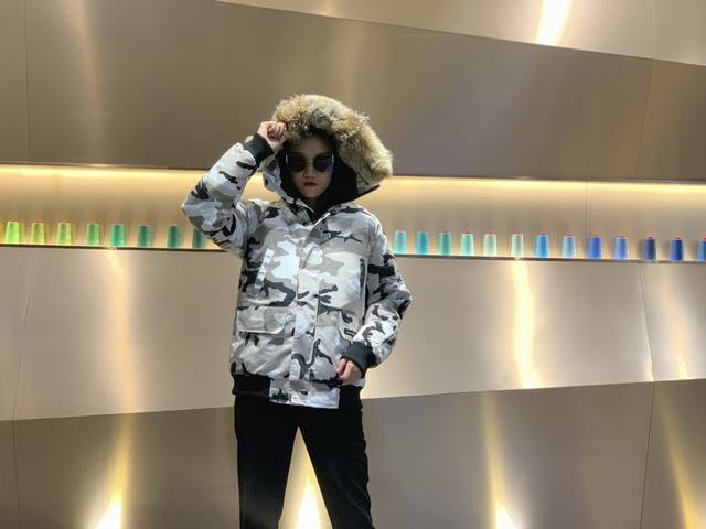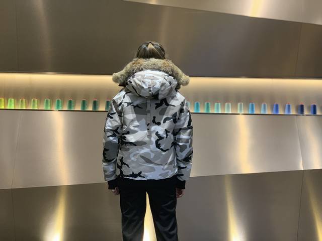 Canada Gooes 01 Style DDD: White Camouflage Unisex DDD Mid-range: Raccoon Fur 570 Wolf Fur DDD Factory Direct Supply: Supplying global purchasing agents, WeChat merchants, physical stores, Tmall, high-end wholesalers and studios, free drop shipping available! Ddd Canada Goose Chilliwack Bomber Jacket 01 Style, unisex, Putin's style, chosen by North and South Pole expedition teams for cold-weather gear, the Rolls Royce of down jackets. Ddd 911 industry-leading anti-counterfeiting chip sensor. Ddd Imported Behringer embroidery machine custom embroidered label, highest level exceeding industry leadership. Ddd Imported Korean 21-count polyester-cotton blend original fabric, TC85 waterproof coating fabric, water-repellent, windproof and wear-resistant. Ddd New national standard 80% white duck down average 450g fill weight, industry-leading fill weight. Ddd features a 100% nylon lining with a double-layer sealing design to prevent down leakage, and seamless ribbed cuffs! It also boasts a Canadian western wolf fur collar. Ddd uses custom-made electroplated zipper pulls from Yoshida YKK, and features a YKK two-way lockable zipper that is sturdy, smooth, and paint-resistant. Ddd uses durable 3M composite Velcro, and all accessories and hardware are custom-made from scratch. Note: Our descriptions are simple and clear; instead of reading exaggerated claims, show us samples for comparison. Ddd 911 is dedicated to providing the purest Canada Goose products, focusing on the highest quality, professionalism, and value! Ddd Size: S-XL (Size chart attached) Ddd