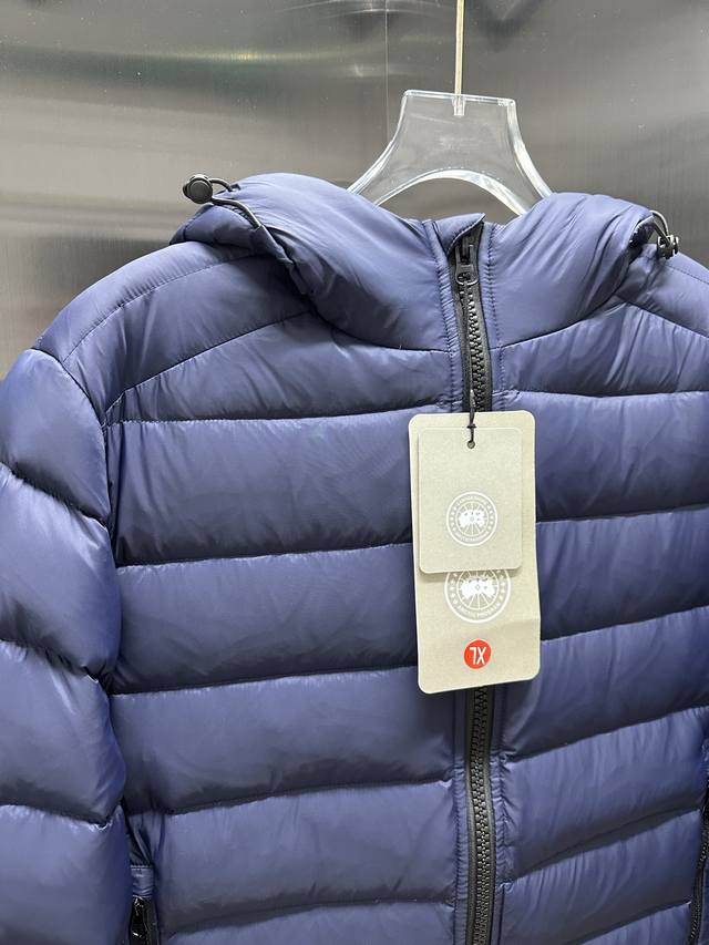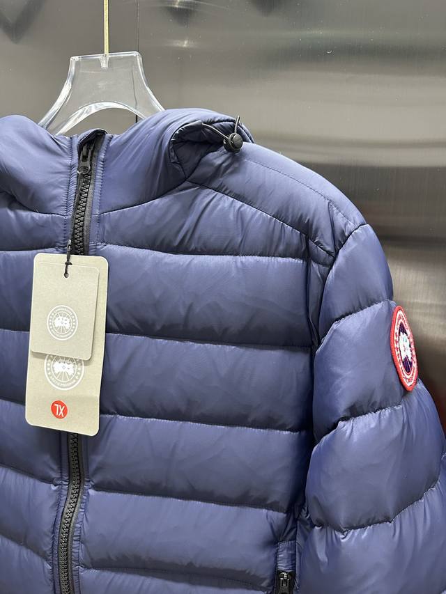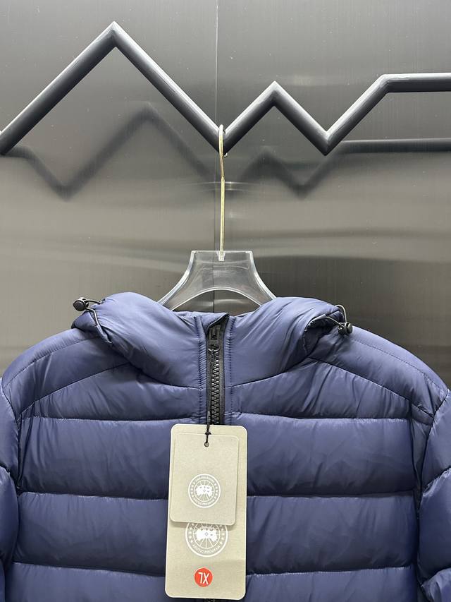 Canada Goose Crofton Solid Color Hooded Zipper Outdoor Warm Down Jacket DDD 90% Down Fill 750 Fill Power Tajima Embroidered White Duck Down Short Lightweight Hooded Down Jacket Ddd Small Zippered Pocket on the Chest for Storage Ddd Thoriumar Hooded Style Versatile, Durable and Warm, Can be worn as a Mid-Layer in Winter, or on its own, or layered under stiffer outerwear in colder environments. Ddd The fabric is a modified Aratotm 30 nylon fabric with a fine texture, super warm and highly durable, and treated with DWR for effective waterproofing and moisture resistance. Ddd's downcompositemapping technology rationally distributes down insulation and synthetic insulation areas. The simple design of the Stormhood features zippered hand pockets and an inner zippered pocket made of synthetic insulation. Combining technology and craftsmanship, it's lightweight yet warm, with a three-dimensional cut, a hooded design, and all necessary tags and accessories. Unisex. Color: Navy Blue. Sizes: M-3XL.