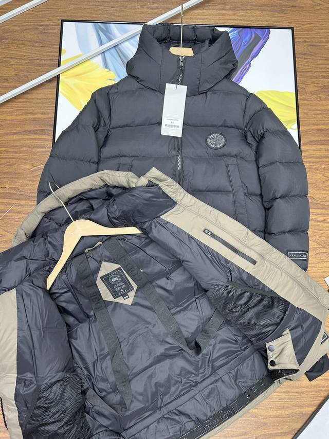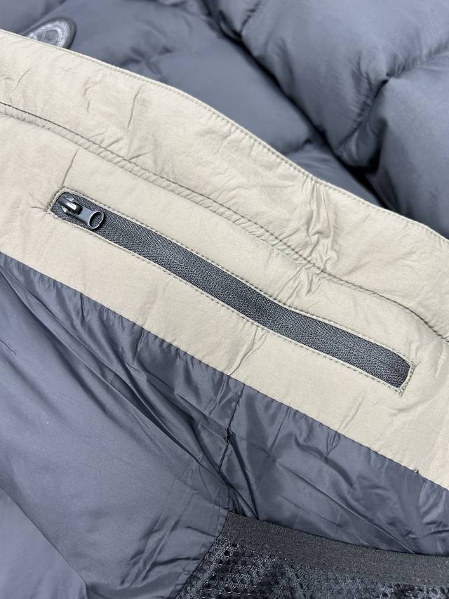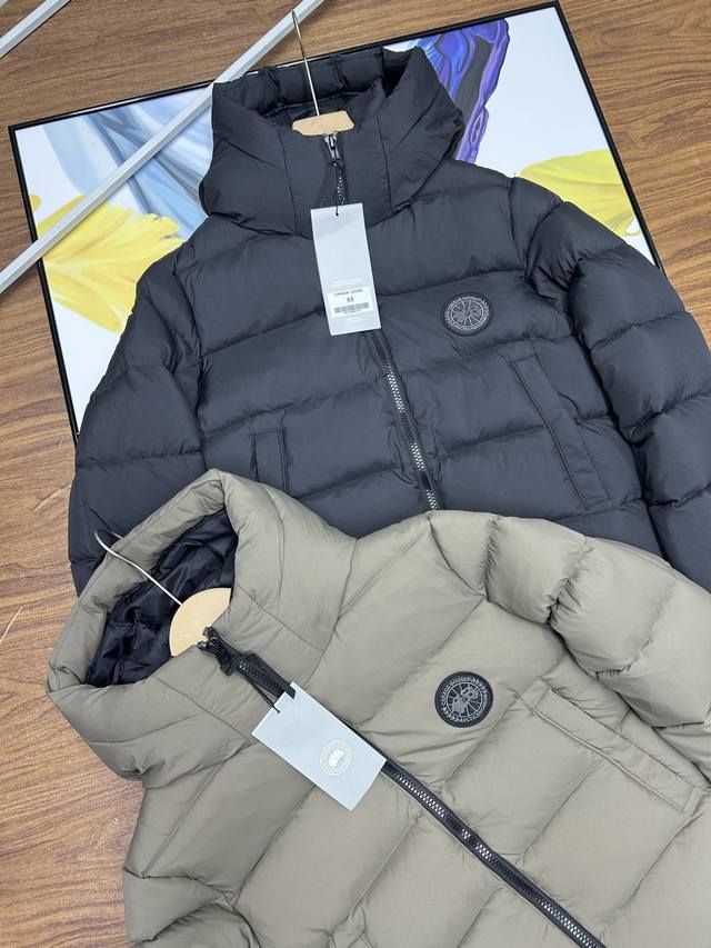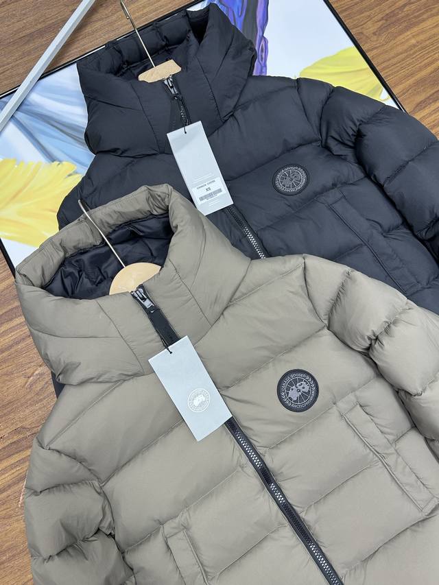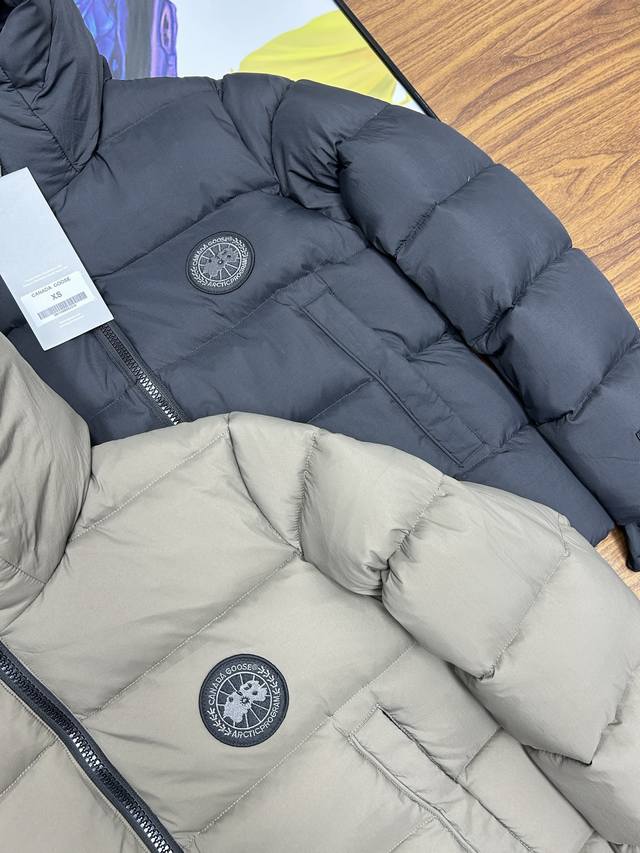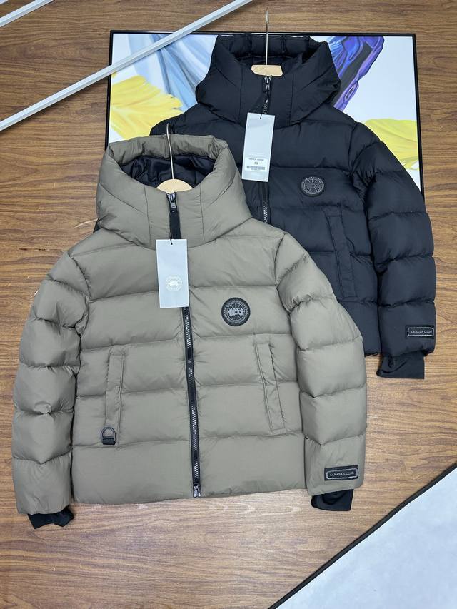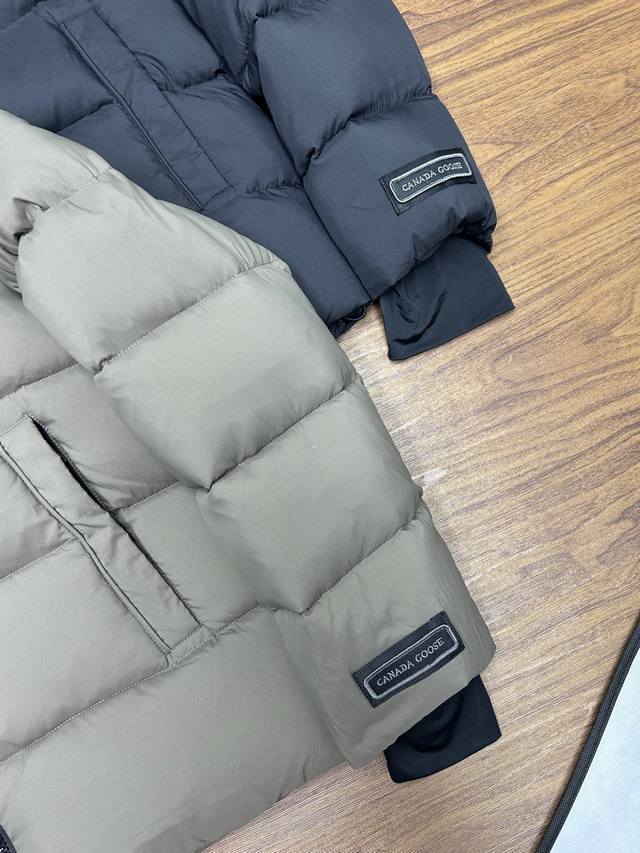 Canada Goose Grandview Series Black Label Hooded Short Down Jacket, Unisex Style, Purchased in June. Original design, perfectly replicating the classic Canada Goose silhouette. 90% white duck down, top size fits up to 230 lbs! Genuine 90% down, this jacket features a thicker fabric for easy wear in snowy weather. Custom-woven three-proof fabric, windproof, rainproof, and friction-resistant. Custom-woven 400D lining allows the 90% white duck down to fill the jacket, making it more fluffy and retaining warmth. Despite its large size, it's very lightweight, making the quality of the down instantly apparent! Down lower than 90% down cannot achieve this level of lightness! Lightweight and warm. Embroidered logo and map of Canada on the sleeves, black badge embroidery! This garment is a lifelike and perfectly replicated replica, embroidered using high-density colored yarn on an imported Bailingda embroidery machine. A simple comparison with common versions on the market will reveal the difference between this high-quality original and the genuine article! Zippers and other accessories are all custom-supplied YKK zippers, which cost 6-7 times more than ordinary zippers. Each zipper webbing features the Canada Goose logo. The entire garment is made to high standards by a large sewing factory, with meticulous stitching and attention to detail. The side pockets are lined with fleece for extra warmth and can hold small personal items. There are also mesh pockets on both sides inside, perfect for storing a thermos or similar item during winter hikes or outings. Two shoulder straps are included for easy removal when it gets hot, allowing you to carry it on your shoulder and free your hands! The cuffs feature high-density ribbed detailing for enhanced warmth and insulation. The care label and neck label are a 1:1 replica of the latest Canada Goose design, with laser-engraved anti-counterfeiting tags and product numbers visible in the detailed images