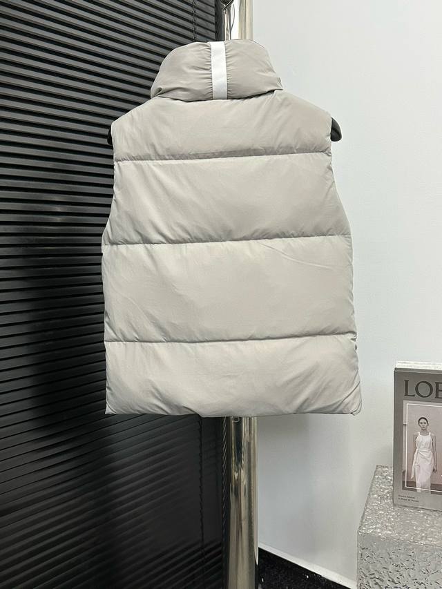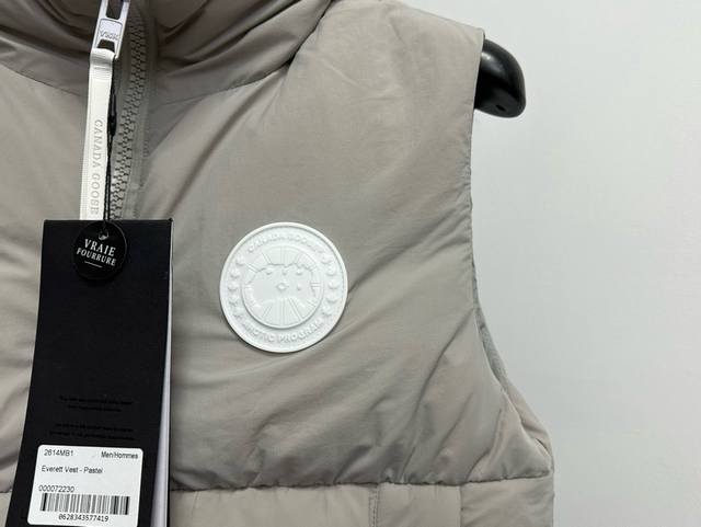 Canada Goose Pastels White Label Down Vest. The White Label series is a capsule limited edition and the hottest Pastels series this year. The chest patch is entirely white, made of pure silicone with a strong embossed contrast. The map of Canada on the badge is lifelike. Counterfeit products use epoxy plastic for the logo, which feels very stiff ! Our original individual orders use 1:1 custom-made original accessories, including imported YKK zippers with correct teeth. Counterfeit zippers have coarse teeth. The zipper webbing, logo, 3M fluorescent printing, custom original care label, placket webbing, and stitching details are all perfectly replicated from the authentic product. Sizes: Xs, S, M, L, Xl, XXL