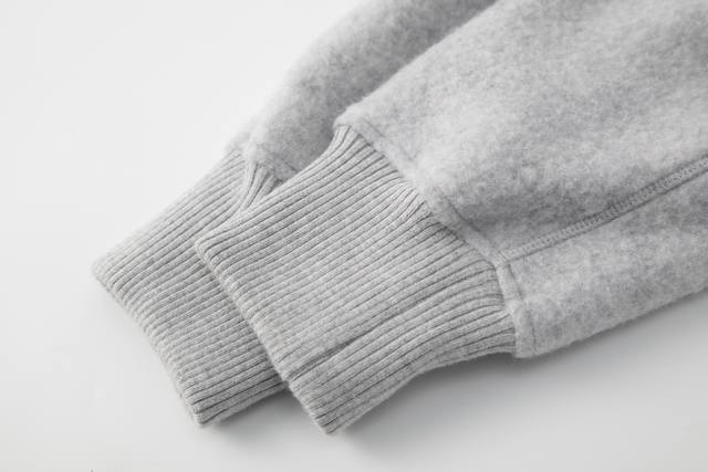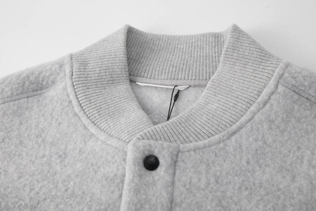 Canadagoose 25Fw New Canada Goose Wool Emblem Baseball Jacket. The fabric is a light grey wool-blend fleece. Wool provides excellent warmth and a natural feel, while the blend enhances the fabric's durability. Ribbed knit details on the collar, cuffs, and hem increase elasticity and fit. The main body, including the front and back panels and sleeves, features flat seams to ensure a smooth silhouette and aligned seams for a clean look. Pockets and cuffs are among the details. The white circular arm patch on the left arm is an important part of the brand identity, meticulously stitched for a secure and flat finish. Sizes: S, M, L, XL. In stock, ships immediately.