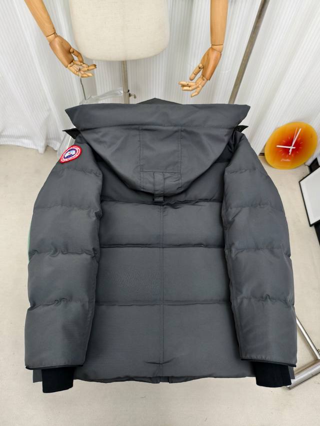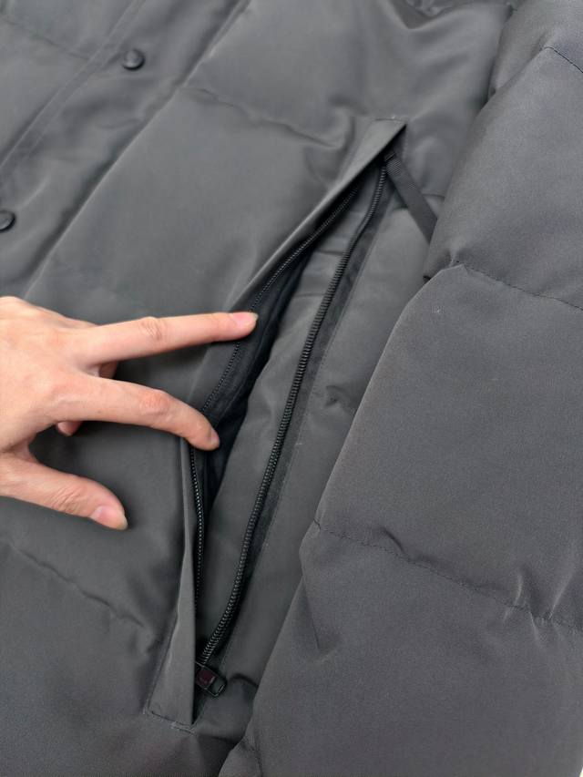 style and adds more protection. This jacket doesn't come with the classic hood trim. A stylish suspended lining with suspenders makes the jacket easy to carry on the shoulder, freeing your hands. A two-way zippered placket with snaps provides windproof warmth, and a windproof placket below the zipper adds an extra layer of protection. Ribbed knit cuffs enhance comfort and lock in heat.