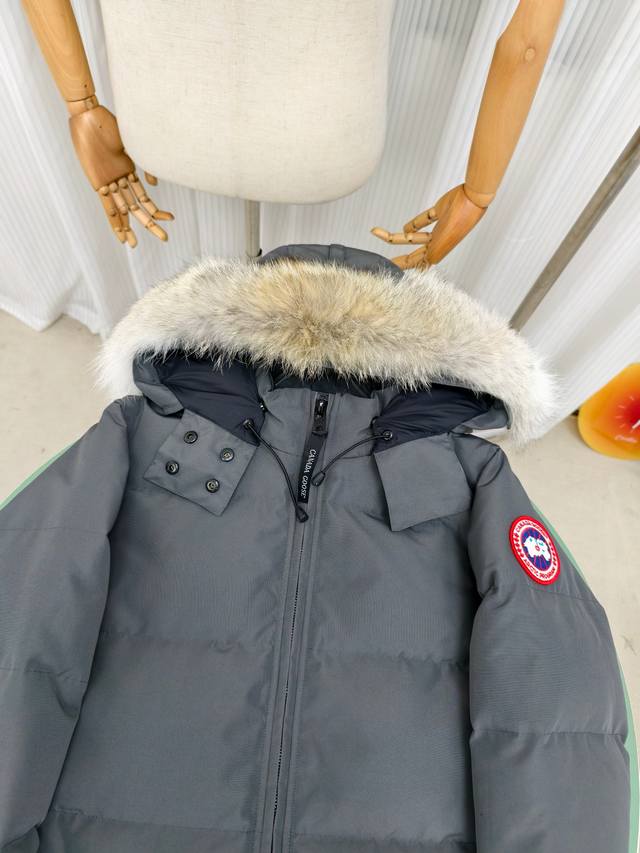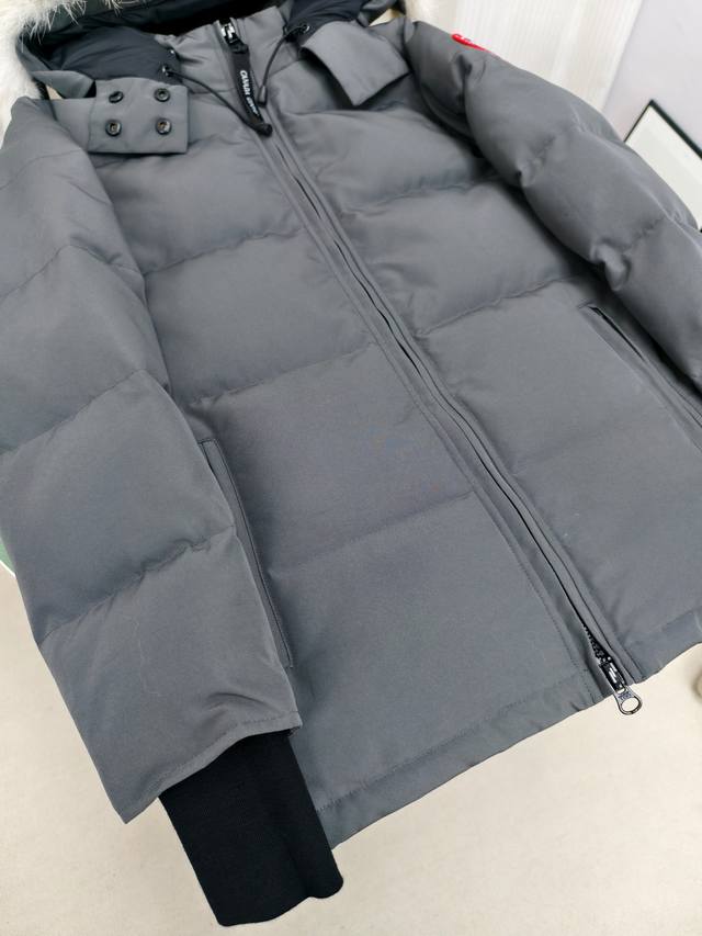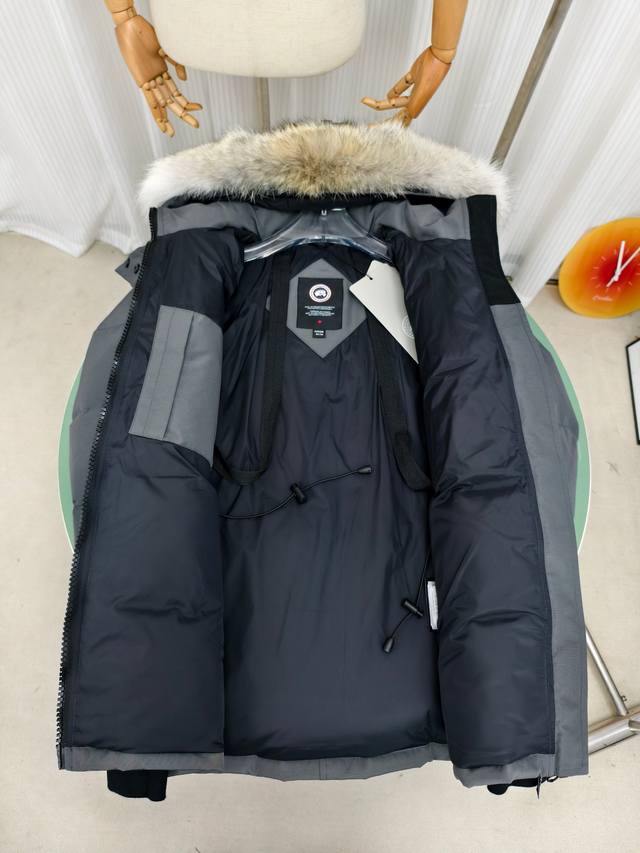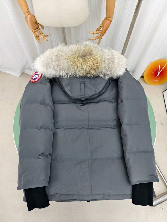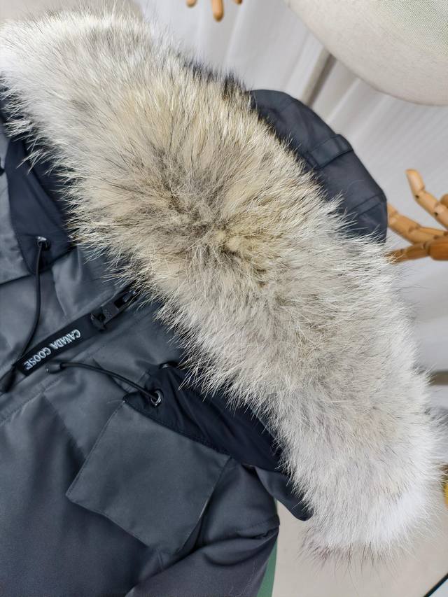 Filled with white duck down. Warm and comfortable. Adjustable hood with high collar and concealed snap closure for increased coverage and better protection against harsh weather. Detachable wolf fur collar. Sturdy YKK two-way locking zipper at the front center. Adjustable drawstring waist. Inner shoulder straps for shoulder carrying. Fleece-lined exterior handwarmer pockets. Sturdy ribbed knit cuffs for warmth