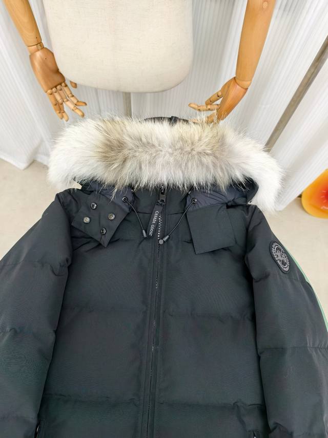 Filled with white duck down. Warm and comfortable. Adjustable hood with high collar and concealed snap closure for increased coverage and better protection against harsh weather. Detachable wolf fur collar. Sturdy YKK two-way locking zipper at the front center. Adjustable drawstring waist. Inner shoulder straps for shoulder carrying. Fleece-lined exterior handwarmer pockets. Sturdy ribbed knit cuffs for warmth