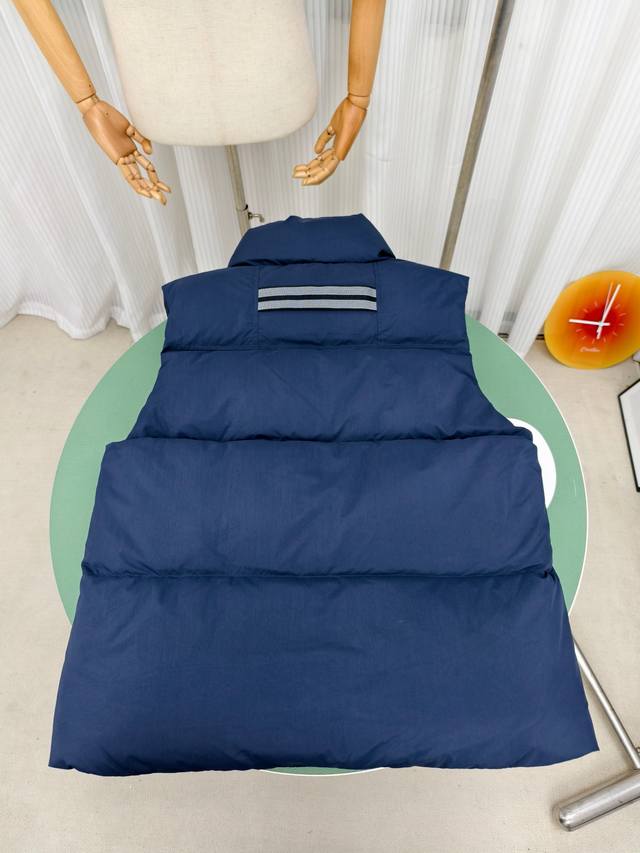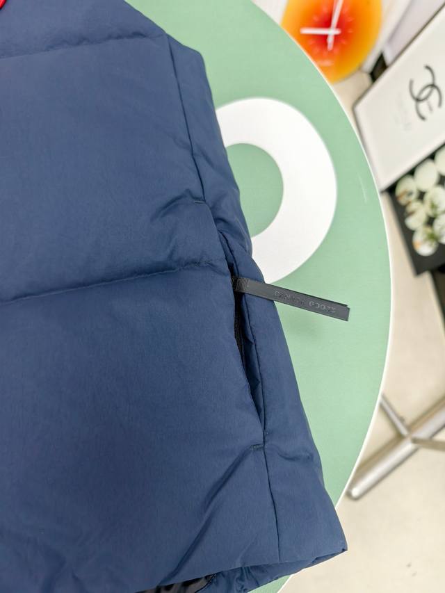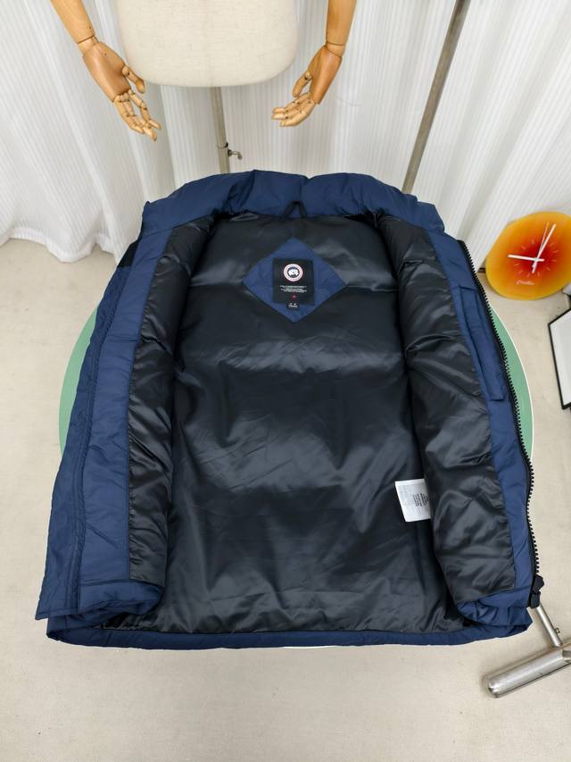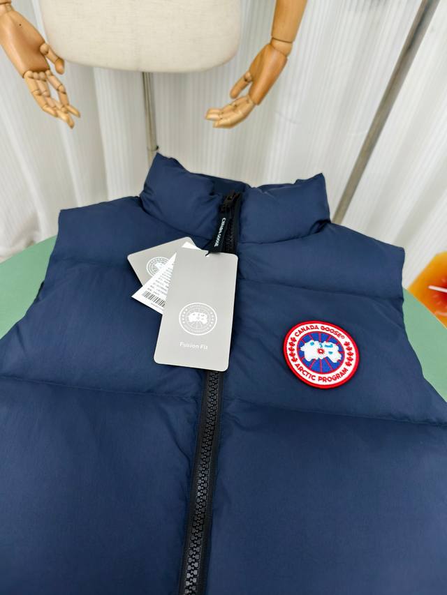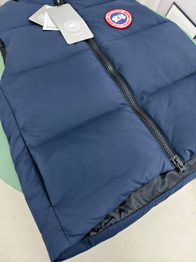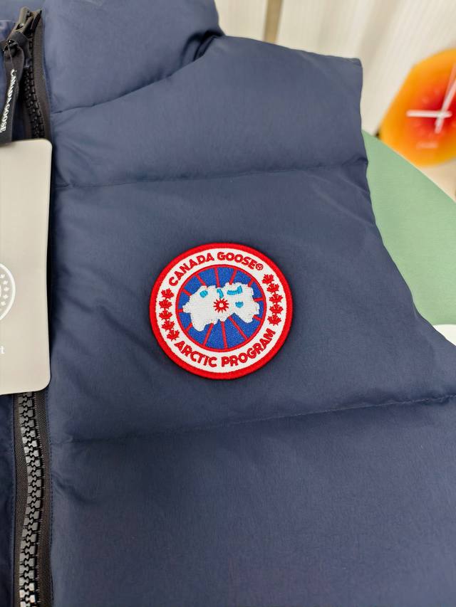 2804M Canada Goose Lawrence down vest. This high-quality version features a durable shell and quilted body, making it a year-round staple. The fabric has a durable, soft touch. A longer back hem provides enhanced protection. Reflective double-stripe gussets on the back. The Lawrence features a carefully designed down-filled collar for wind protection, a two-way front zipper, and a longer back hem. Colors: Black, Red Label, Black, Black Label, Desert, Ocean Blue. Sizes: XS-2XL.