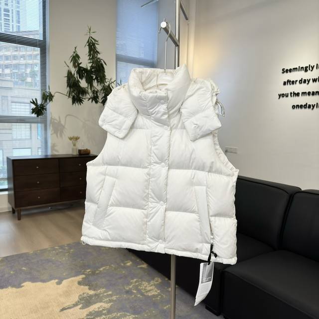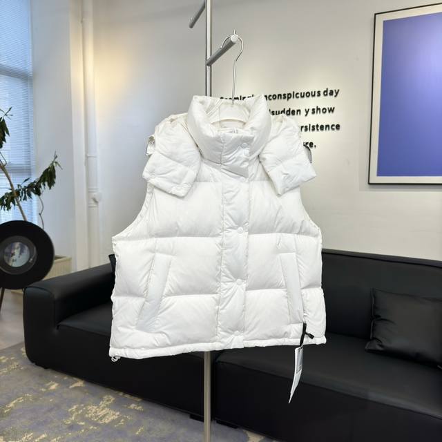 detachable premium insulated hood features a logo element secured with snap fasteners and is filled with down, providing greater softness for the head and neck area. If you don't like wearing it, you can remove it and wear it directly as a down jacket