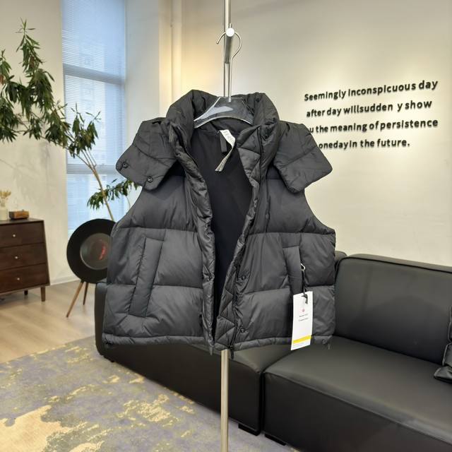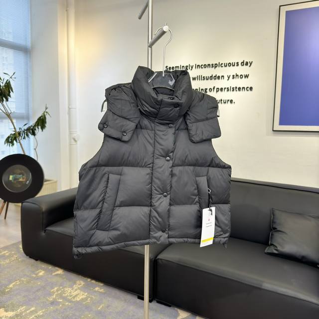 detachable premium insulated hood features a logo element secured with snap fasteners and is filled with down, providing greater softness for the head and neck area. If you don't like wearing it, you can remove it and wear it directly as a down jacket